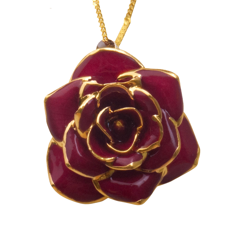 梦克拉 Mkela 鲜花玫瑰烤漆吊坠 玫瑰花吊坠红色玫瑰花项链花朵吊坠女饰品 花形 吊坠 民族风 红色