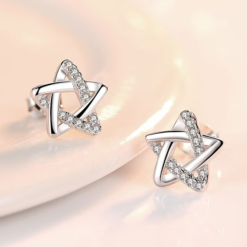 鑫铂尼 银饰耳钉女养耳洞耳饰耳丁简约免摘七夕情人节生日纪念礼物送闺蜜女友 星星耳钉一对