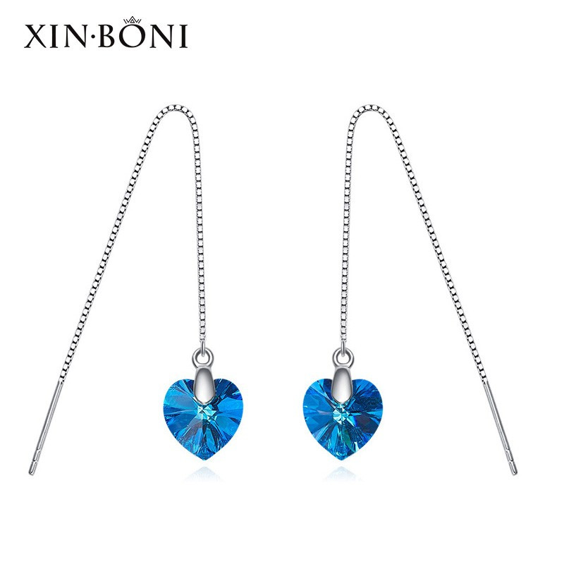 鑫铂尼浪漫之心耳钉耳线时尚饰品银耳饰耳环 简约气质学生清新个性925纯银森系风格耳坠耳线浪漫520情人节礼物送女友