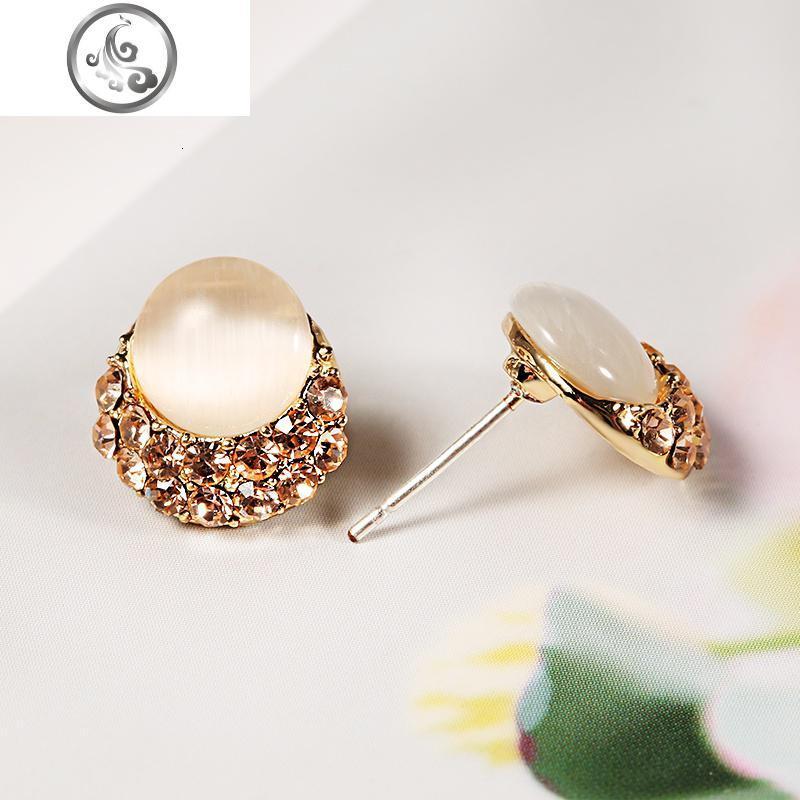 JiMiDAFA猫眼石耳钉 洗澡不用摘小众风简约白色石头14K注金耳骨钉