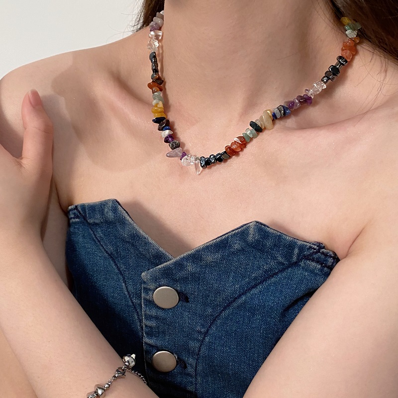 JiMi彩色石头项链小众个性水晶串珠链高级ins甜酷嘻哈锁骨链饰品 彩色石头项链43+5cm