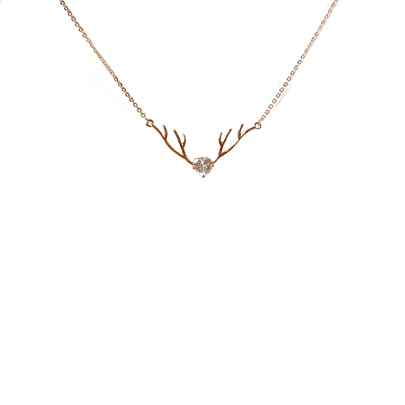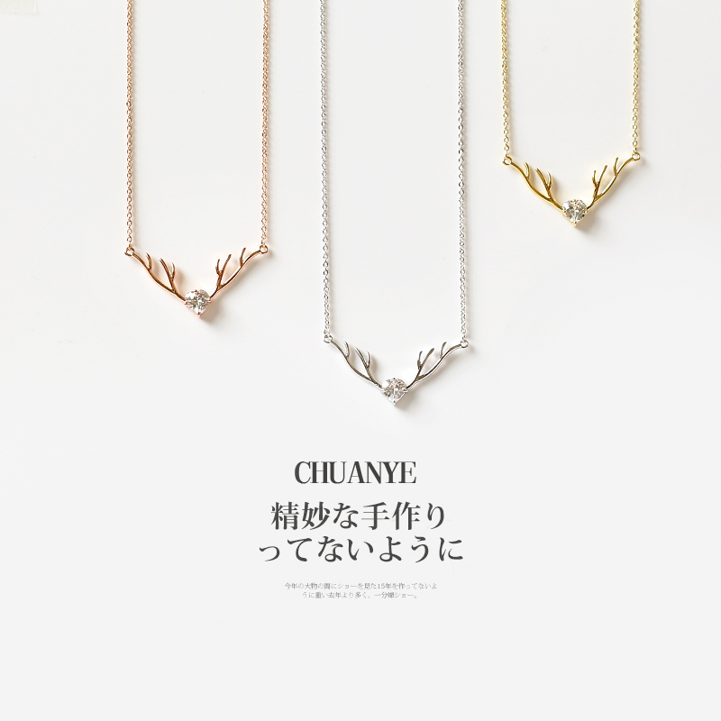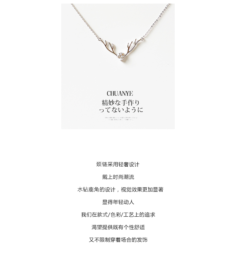 日系轻灵鹿角项链气质水钻合金吊坠锁骨链成人配饰女 JiMi 3#银色