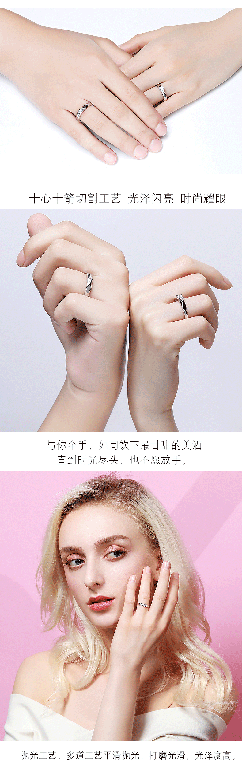 S999足银情侣戒指纯银一对刻字对戒男女仿真钻戒周年纪念520 JiMi