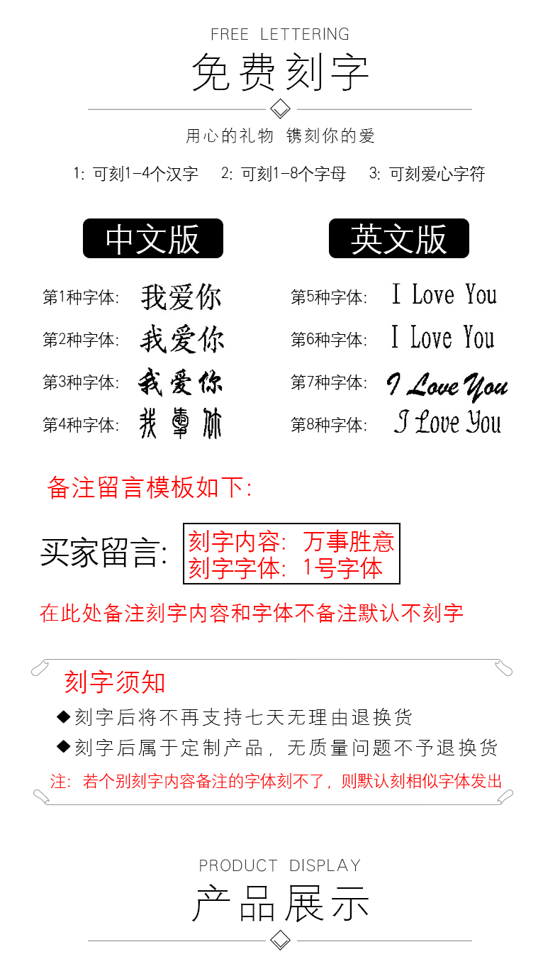 • 定制商品不支持无理由退换货,如有质量问题,可联系客服协商解决。