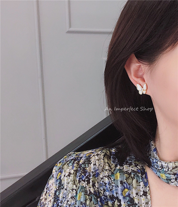 JiMi质感轻奢白贝母半钻蝴蝶耳钉女2023新款温柔气质甜美百搭银针耳饰