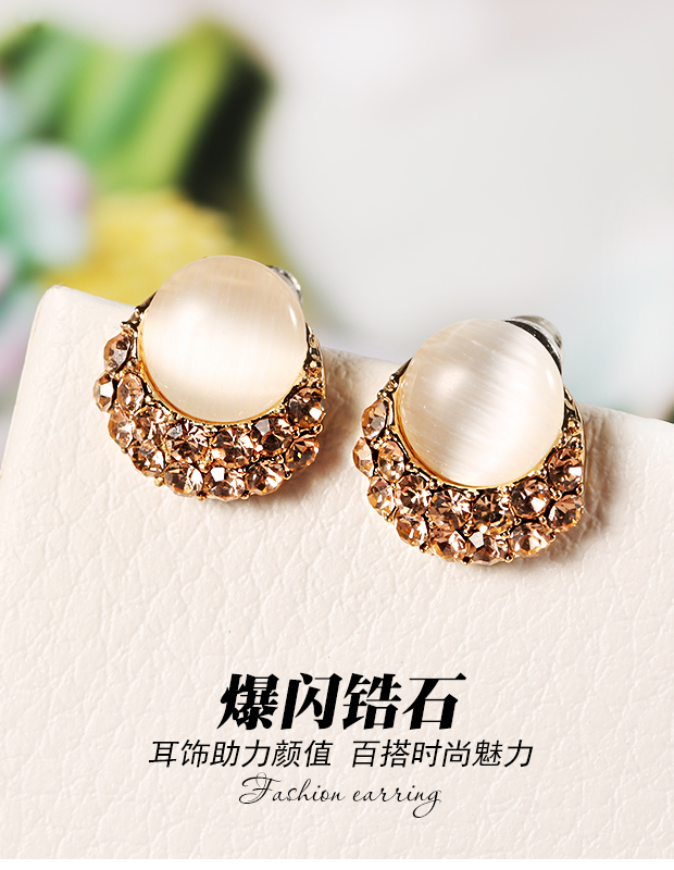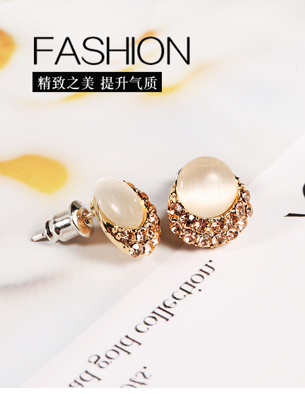 耳钉女纯银气质S925猫眼石镶钻耳环日韩国时尚耳扣耳饰品潮 JiMi 0940猫眼石银针