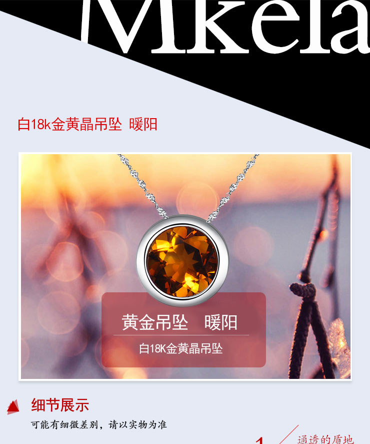 梦克拉Mkela 白18k金黄晶吊坠 暖阳 彩宝圆形刻面黄水晶 红色