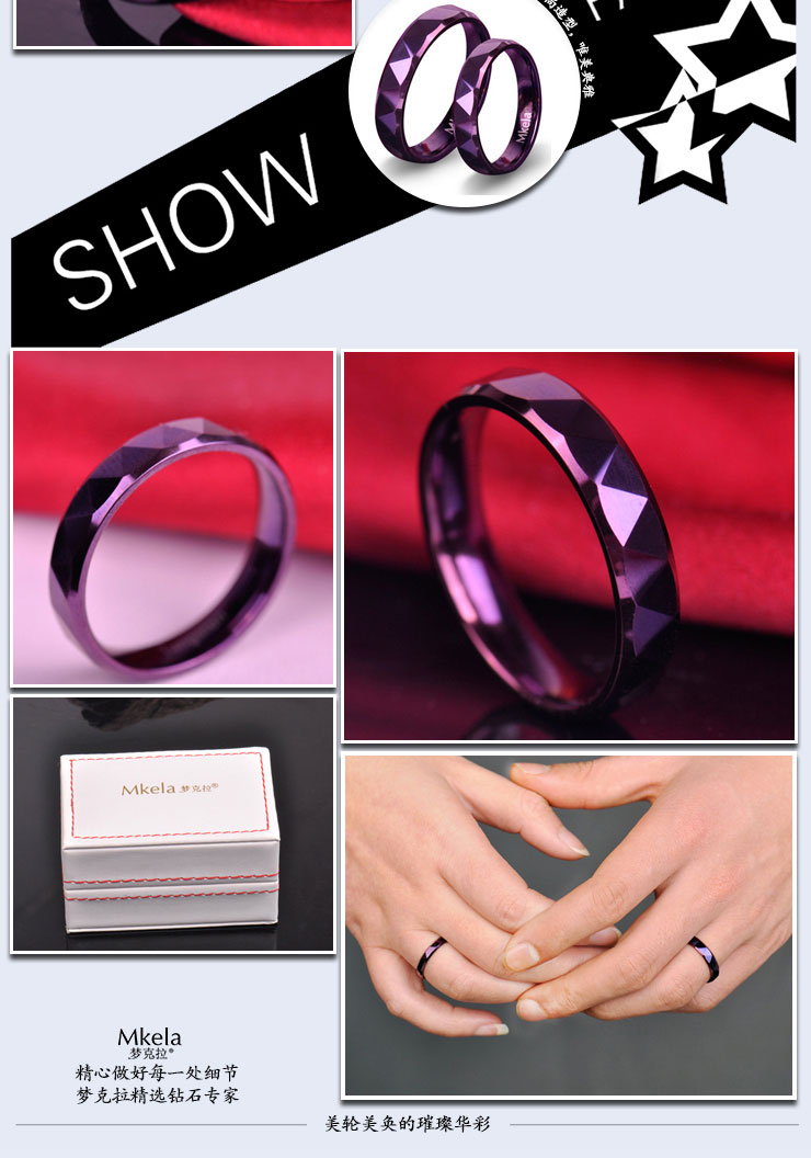 梦克拉 Mkela 钨金情侣紫色戒指 炫美悦美 情侣对戒