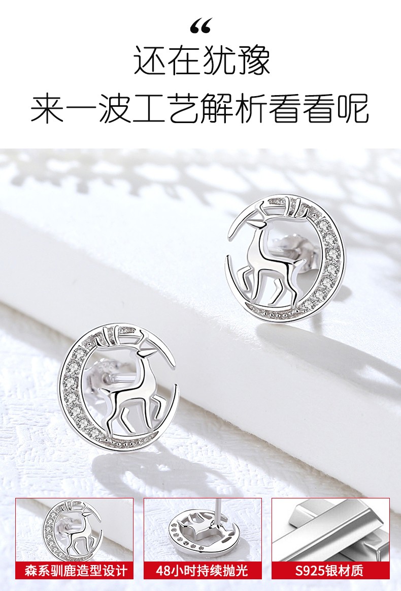 鑫铂尼耳钉女新款小鹿气质个性一路有你耳饰七夕情人节送闺蜜老婆媳妇
