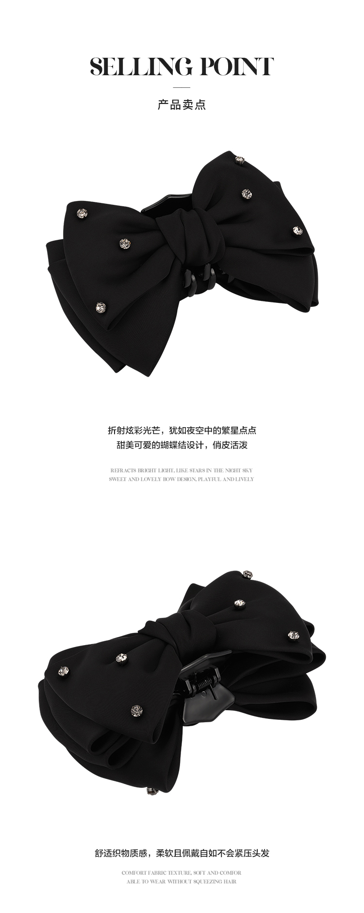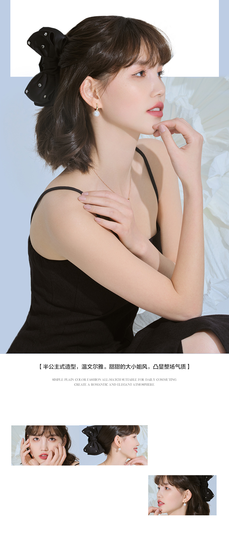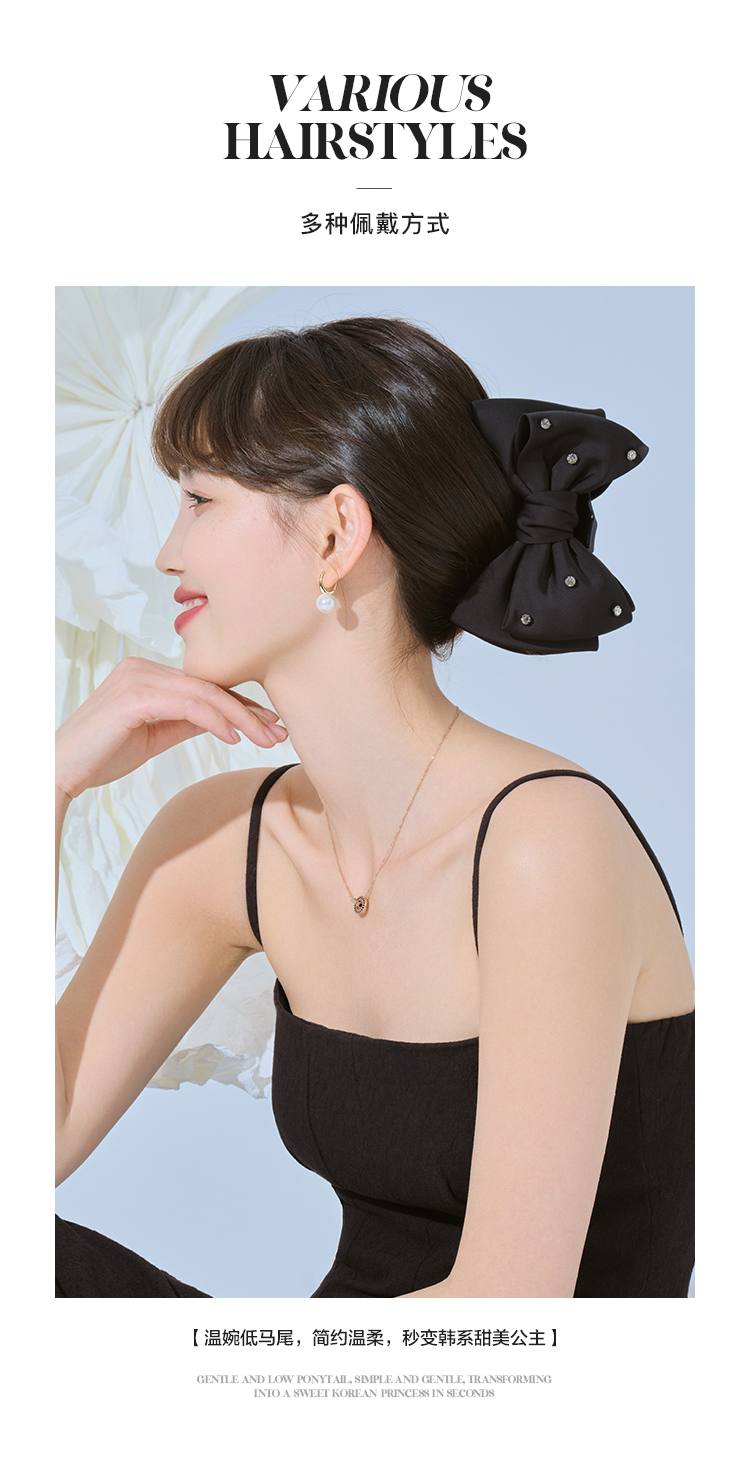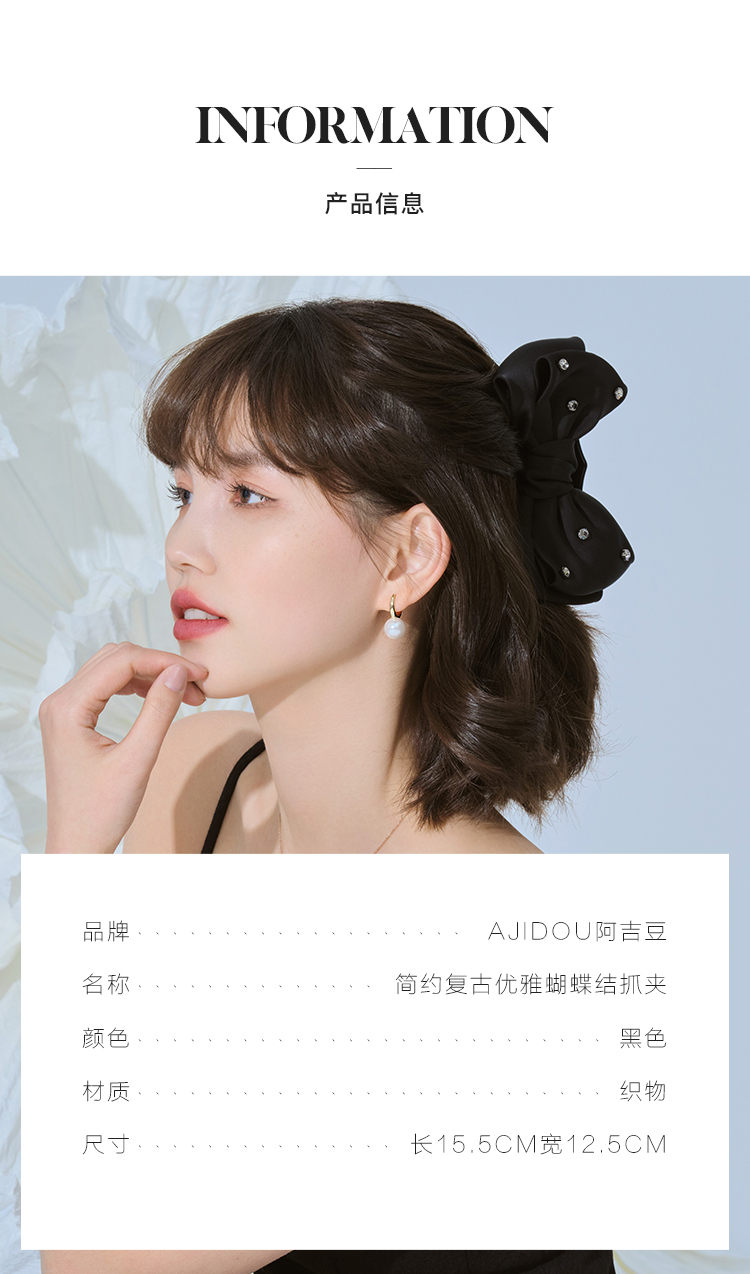 JiMi简约复古优雅蝴蝶结抓夹高级感气质时尚百搭发饰女款 黑色