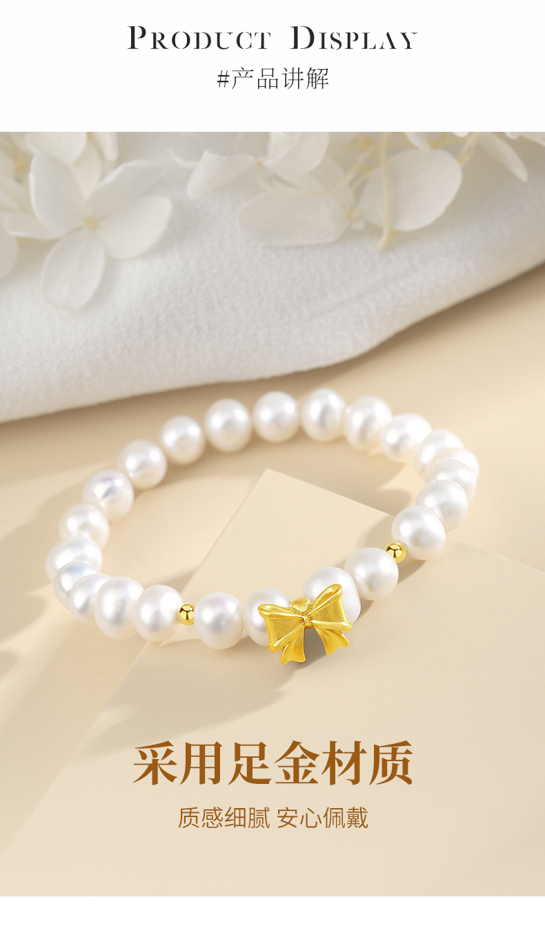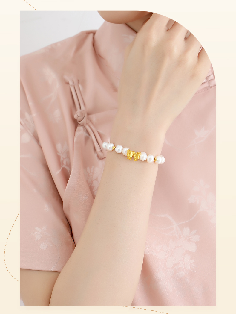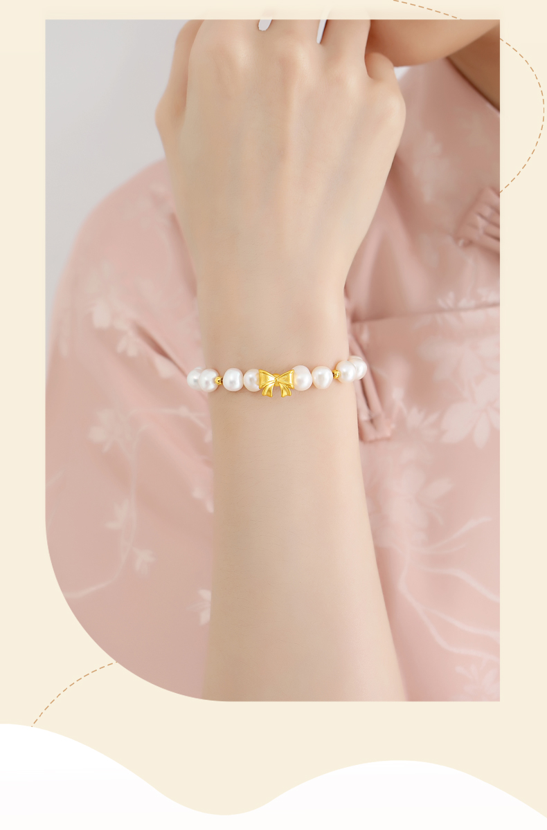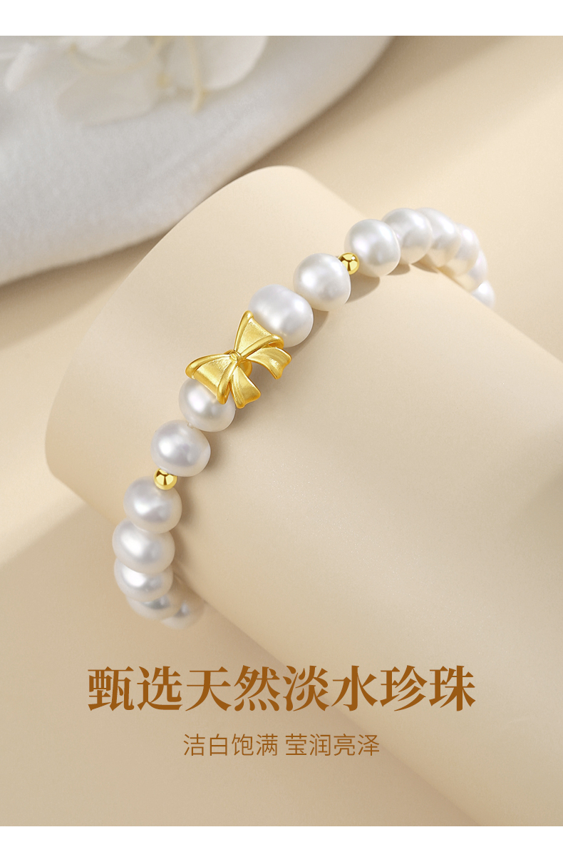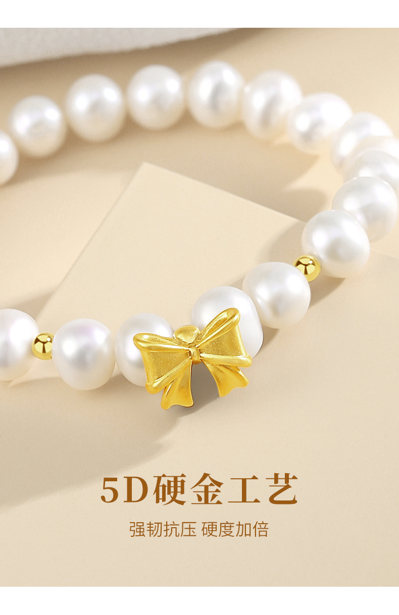鑫铂尼足金999在逃公主蝴蝶结手链女天然淡水珍珠手串硬金转运珠饰品情人节圣诞新年送朋友妈妈老婆 足金蝴蝶结珍珠手串