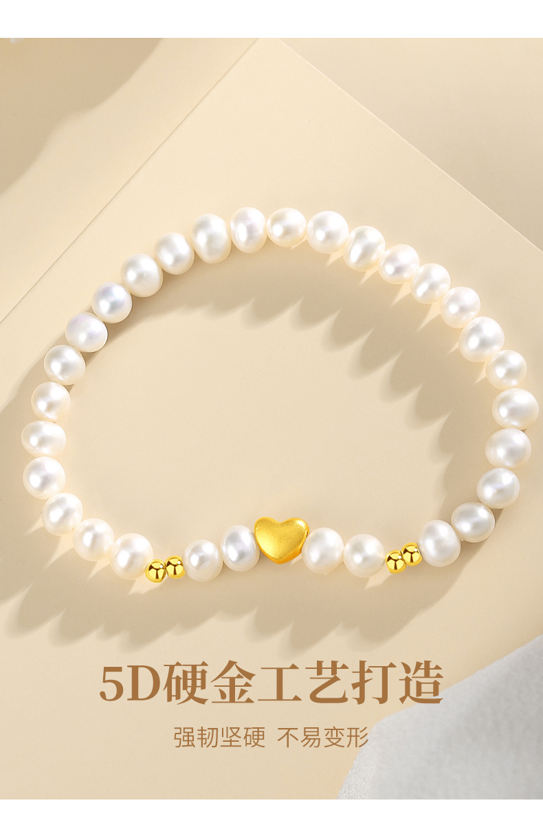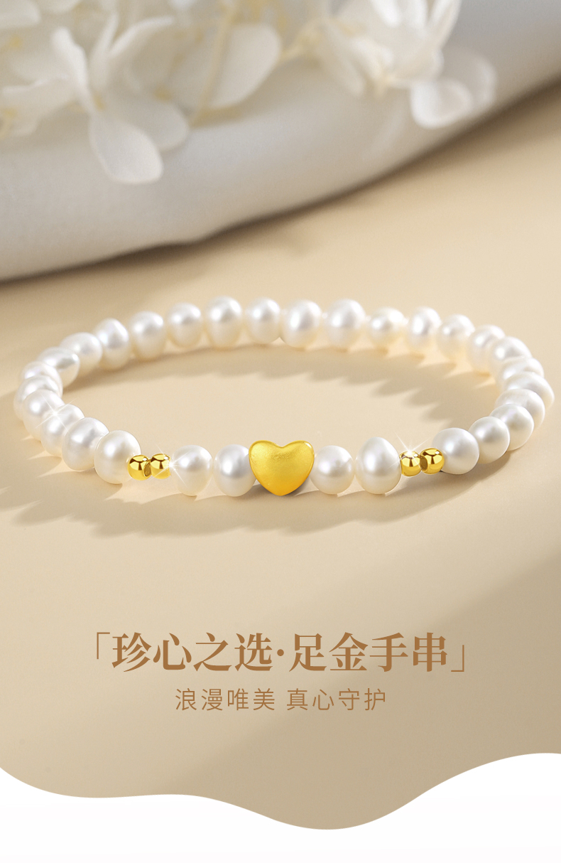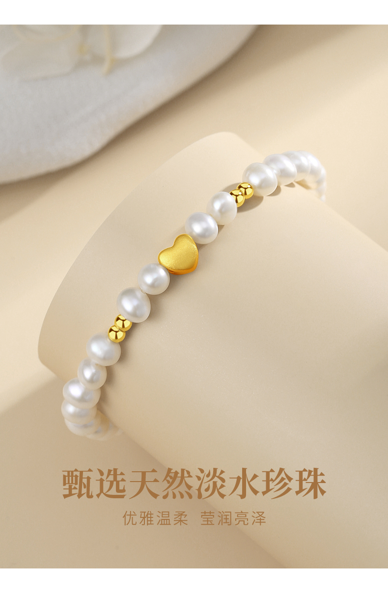 黄金首饰999足金手链女爱心转运珠天然淡水珍珠手串饰品轻奢高级感生日礼物圣诞新年送朋友 珍心之选足金手串