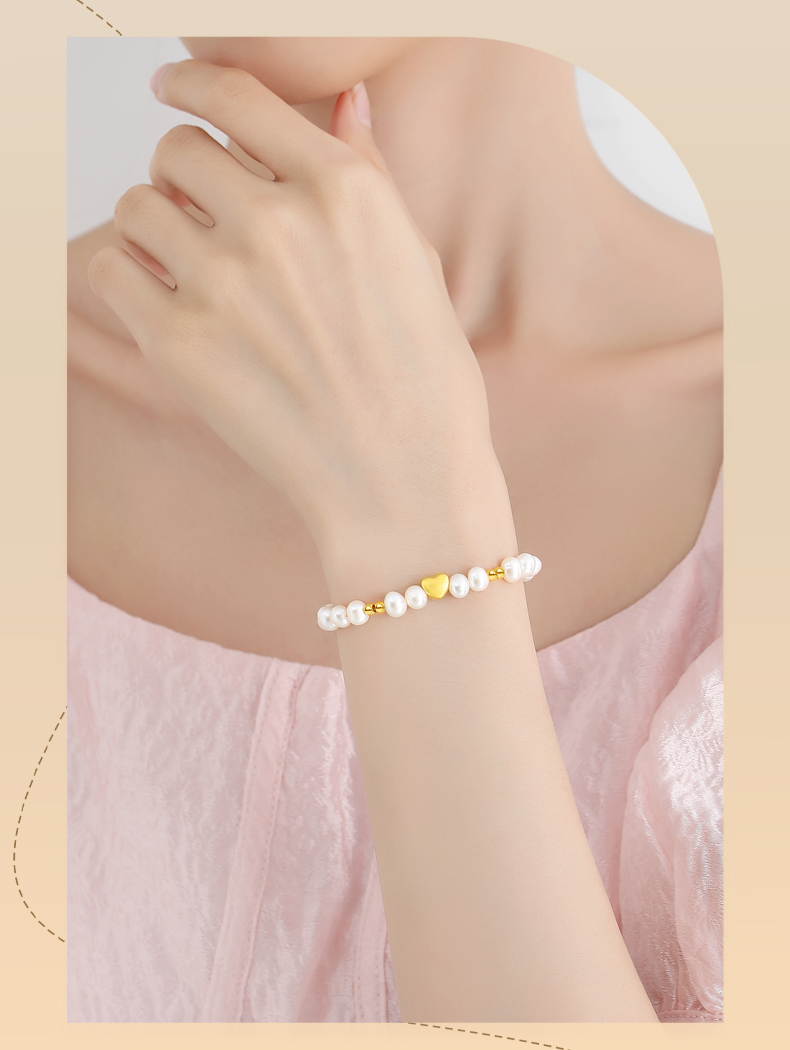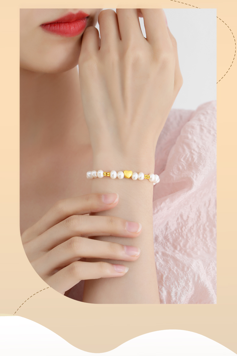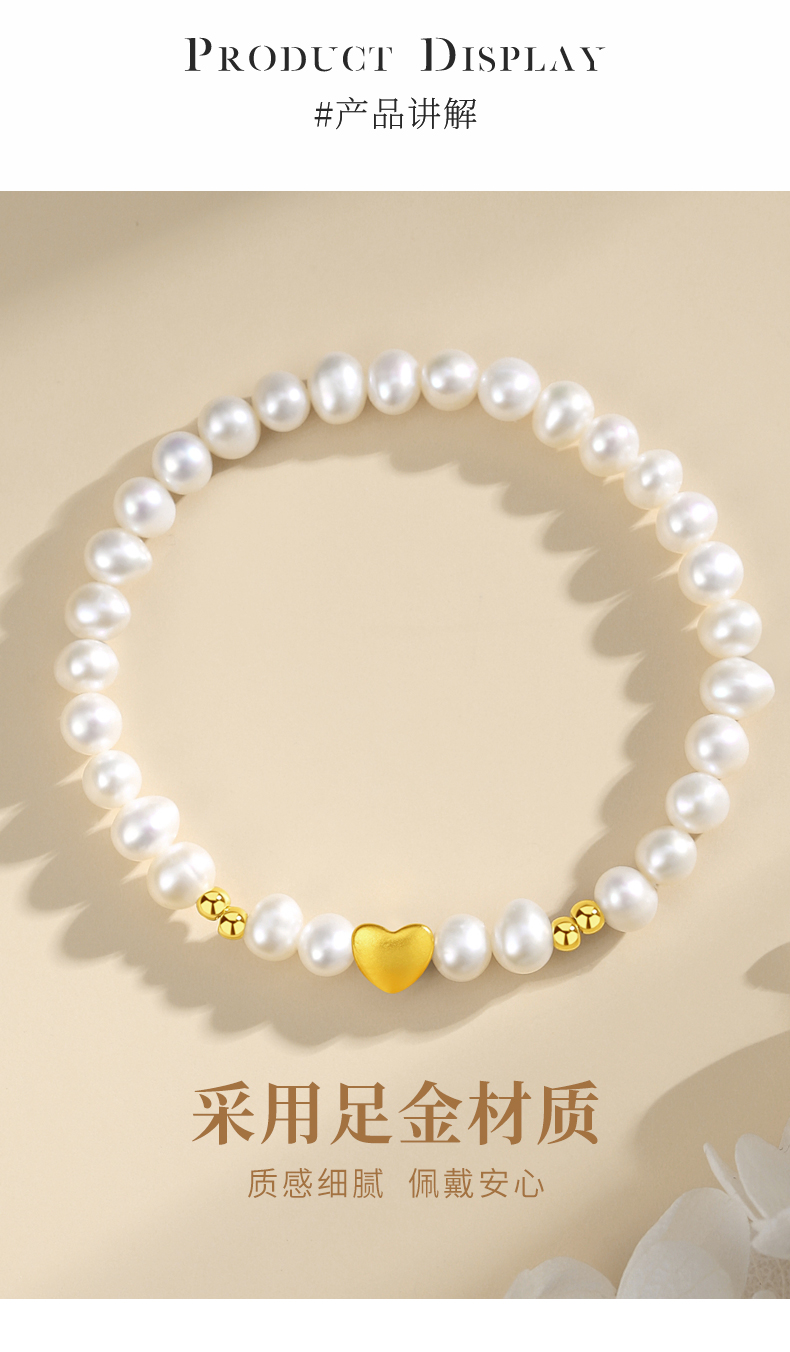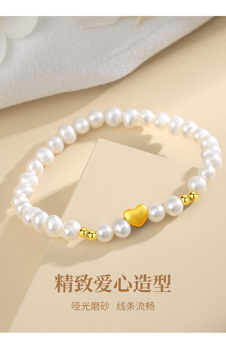 黄金首饰999足金手链女爱心转运珠天然淡水珍珠手串饰品轻奢高级感生日礼物圣诞新年送朋友 珍心之选足金手串