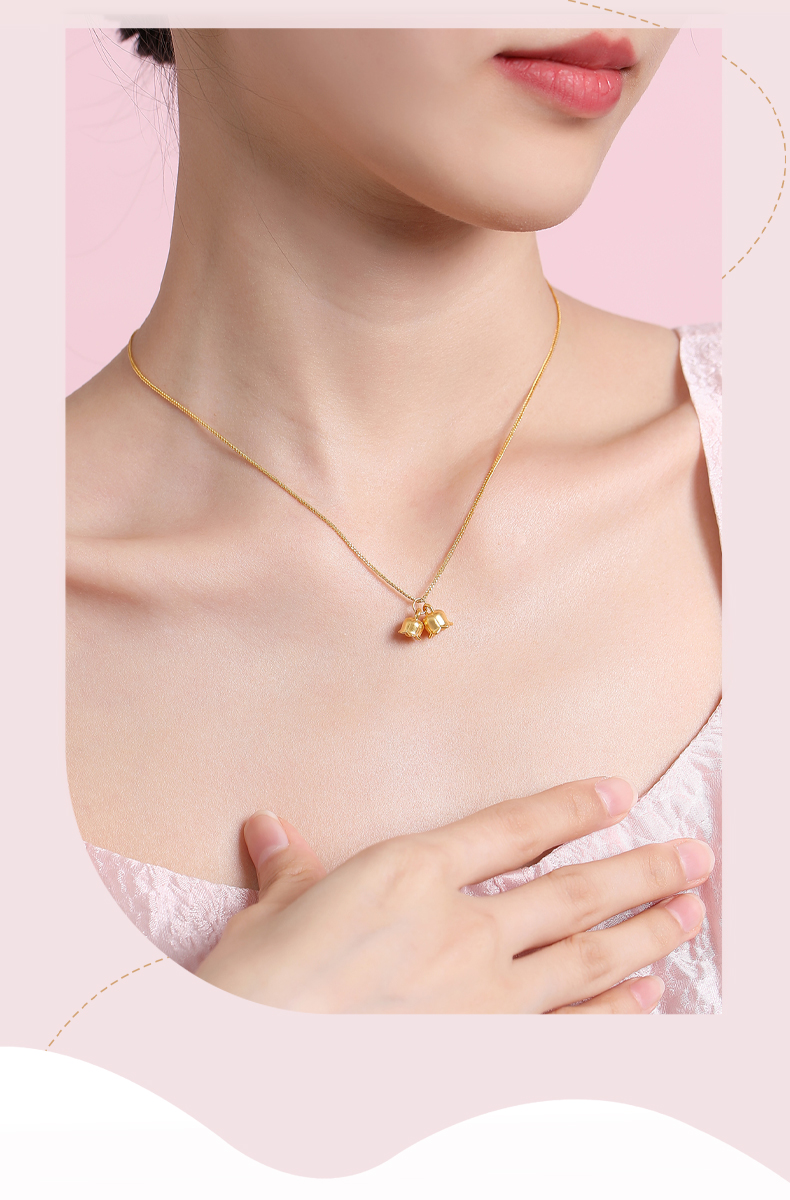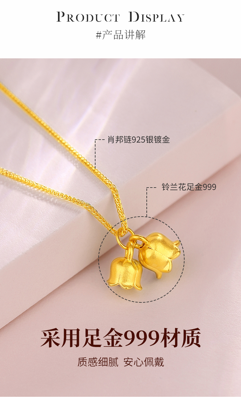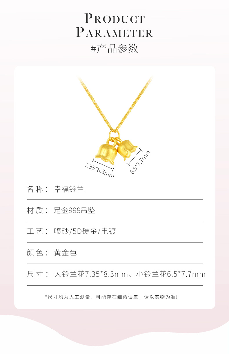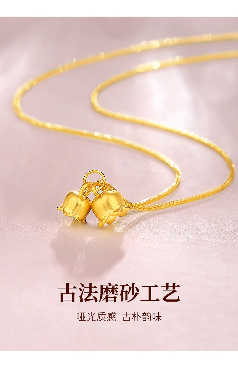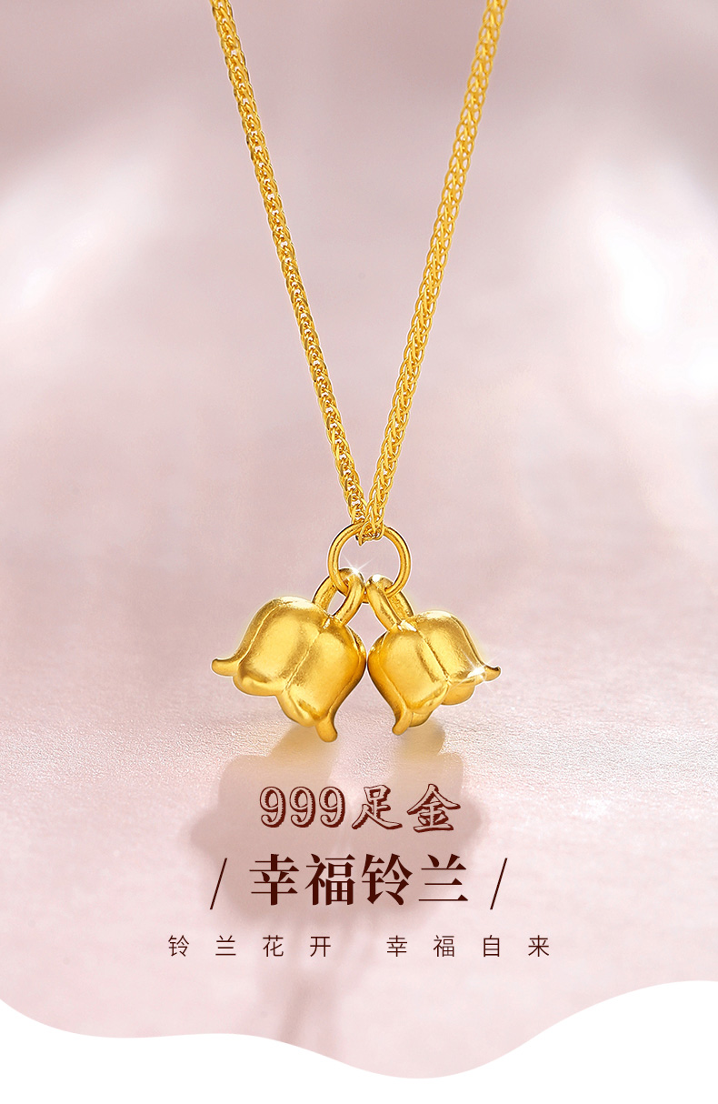 轻奢品牌 足金幸福铃兰吊坠项链珠宝首饰结婚订婚周年纪念日生日礼品送老婆媳妇女神女士妈妈父亲 足金幸福铃兰吊坠+送肖邦银链