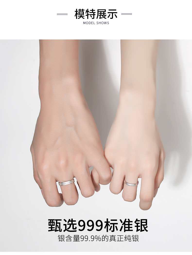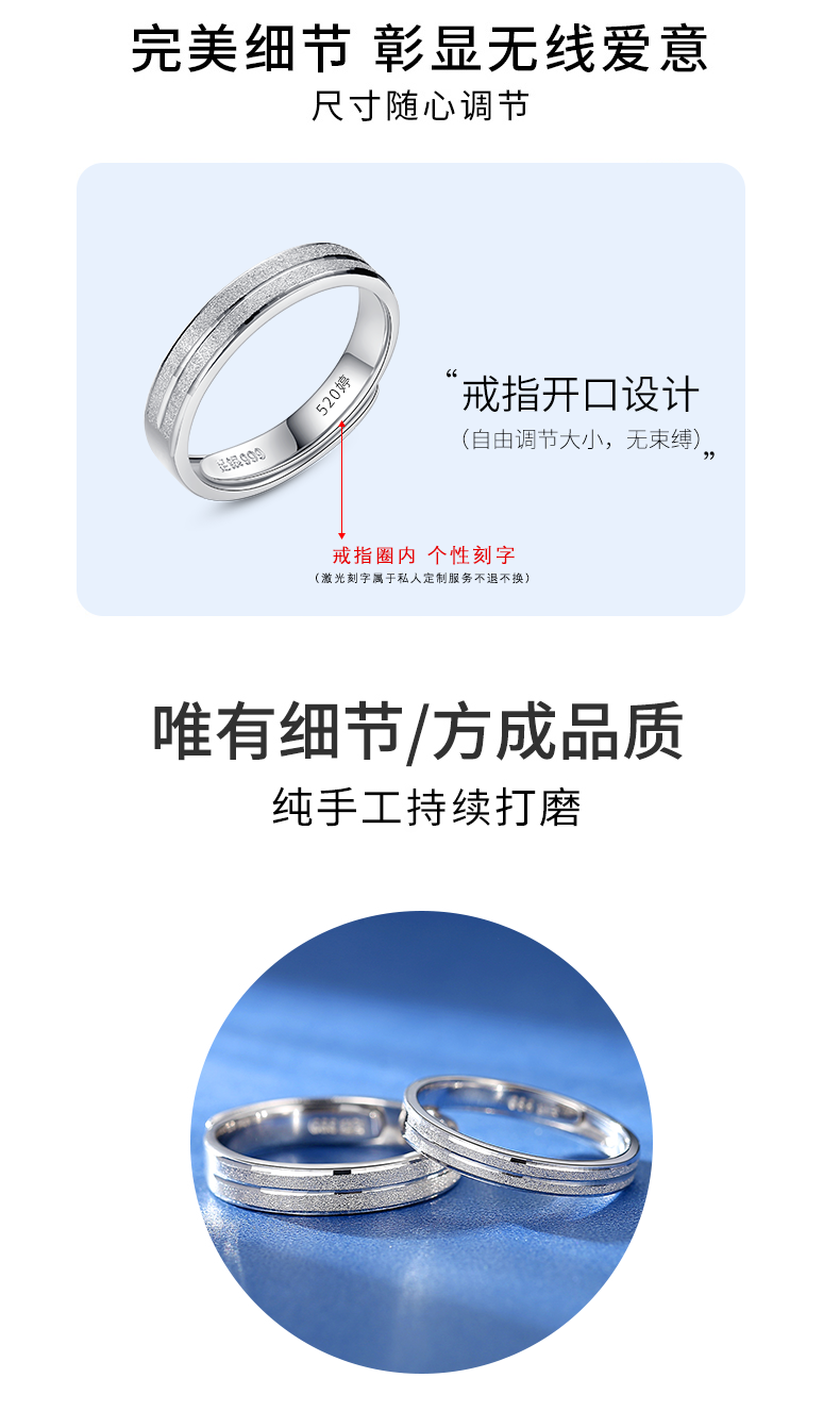 鑫铂尼 999足银磨砂情侣戒指纯银一对对戒银饰女生闺蜜饰品 纪念日520情人节礼物送男友女友 钟久久