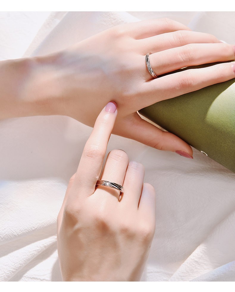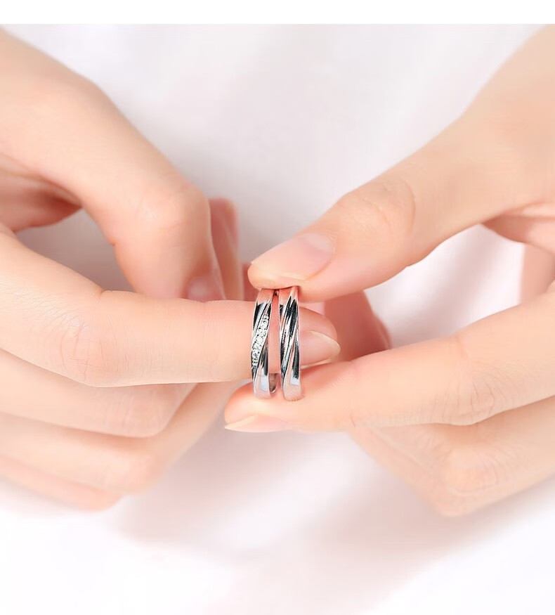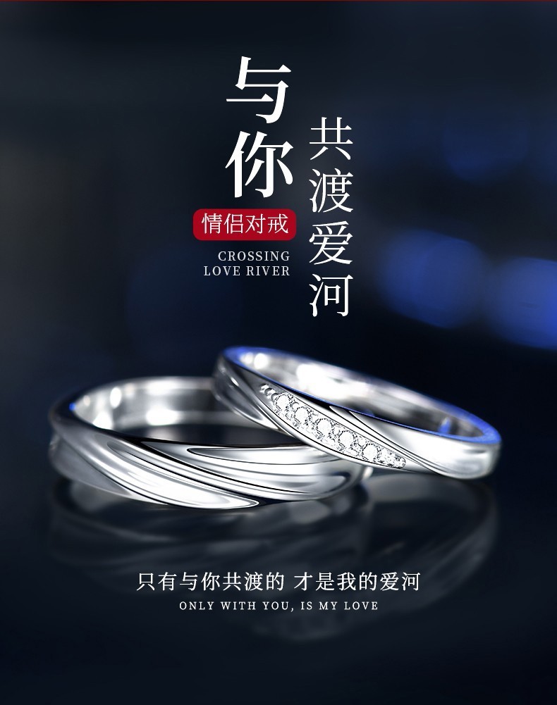 鑫铂尼七夕情人节情侣款共渡爱河戒指简约百搭告白对戒送女朋友老婆礼物