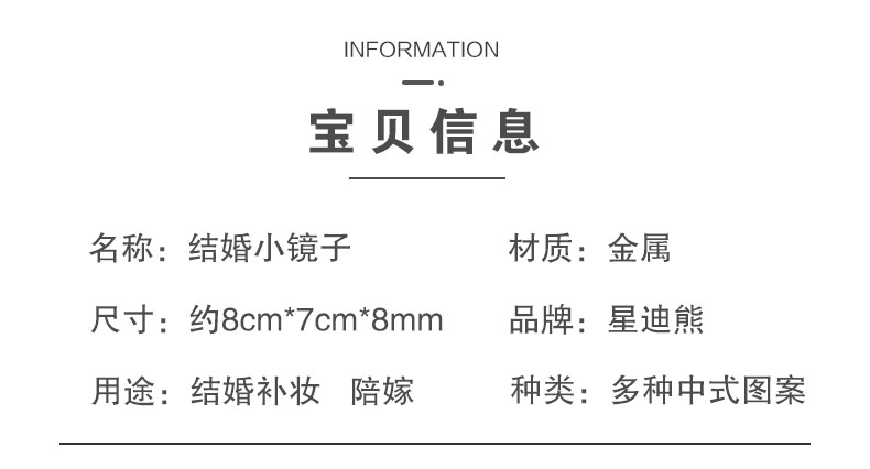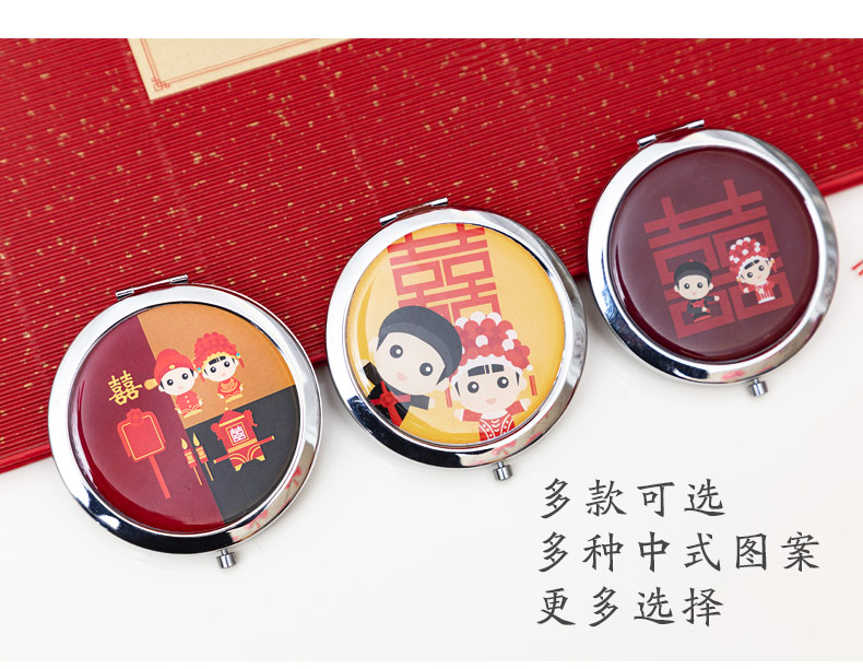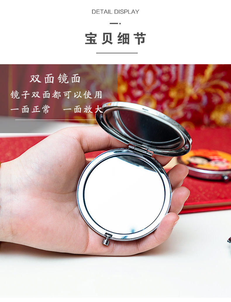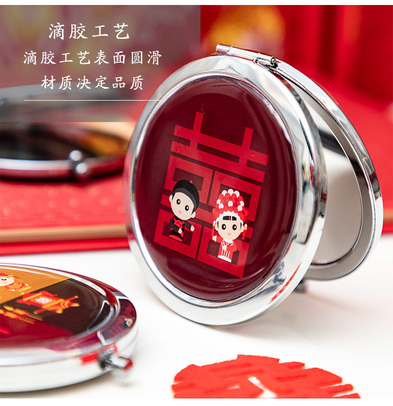 敬平新娘陪嫁嫁妆化妆镜随身双面小圆镜迷你便携结婚补妆镜子结婚用品便携式用镜 小圆镜(款2)一个