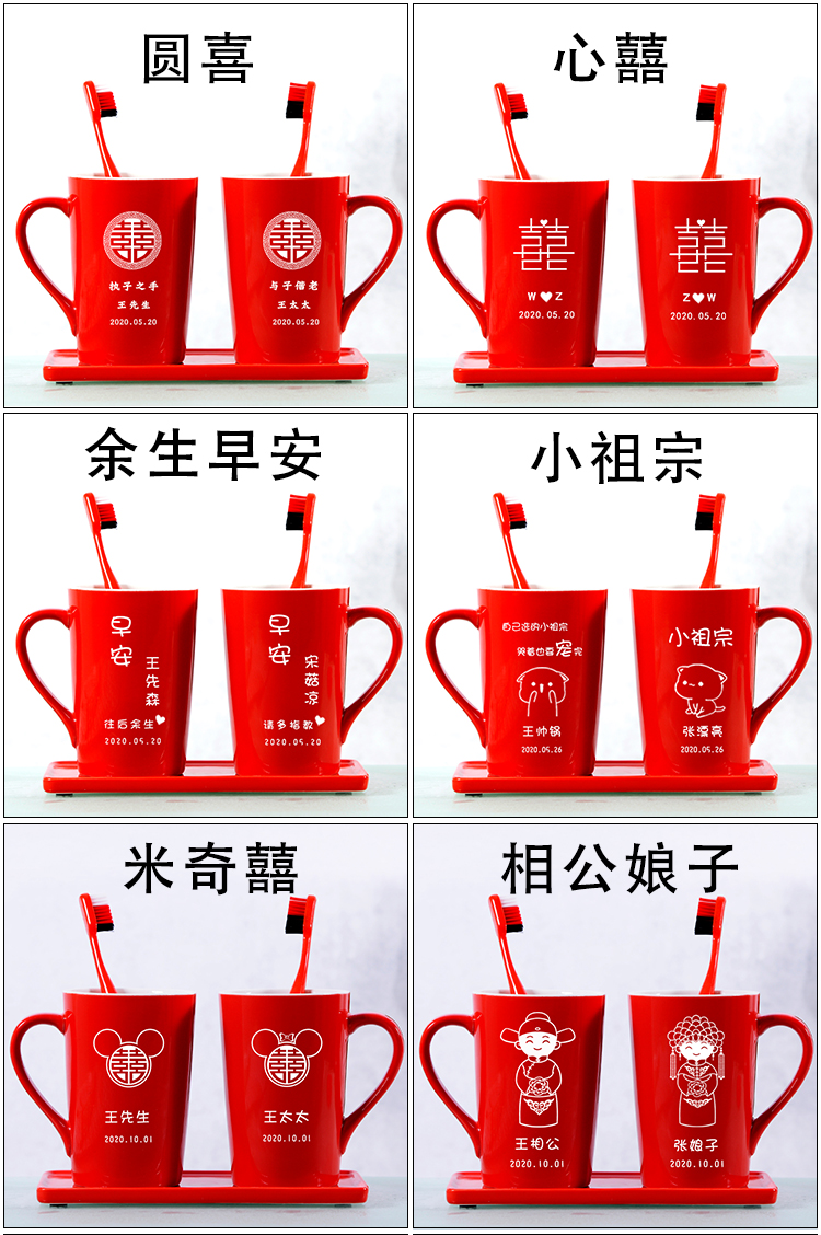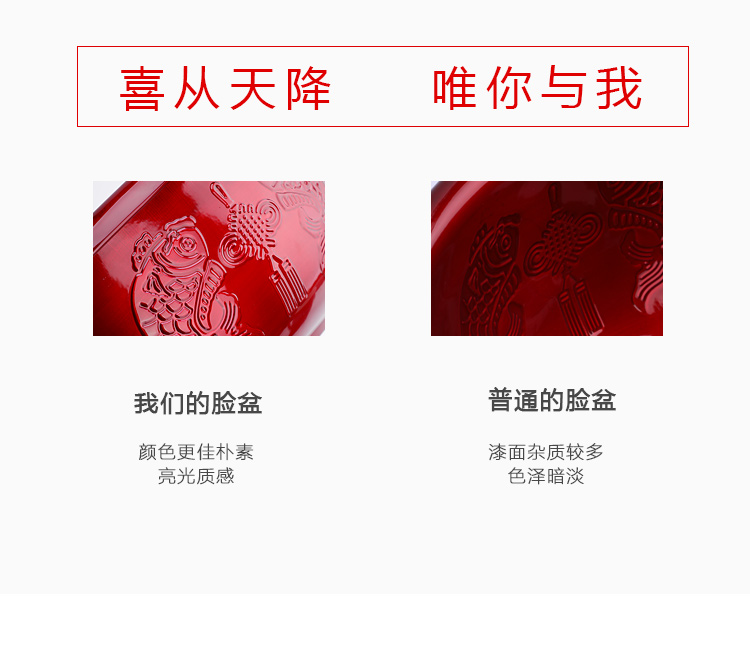 JING PING喜盆盆家用陪嫁结婚脸盆婚庆用品红套装盆子一对新娘嫁妆