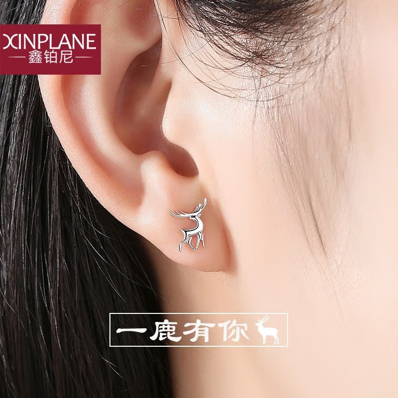 鑫铂尼耳钉女新款小鹿气质个性一路有你耳饰七夕情人节送闺蜜老婆媳妇