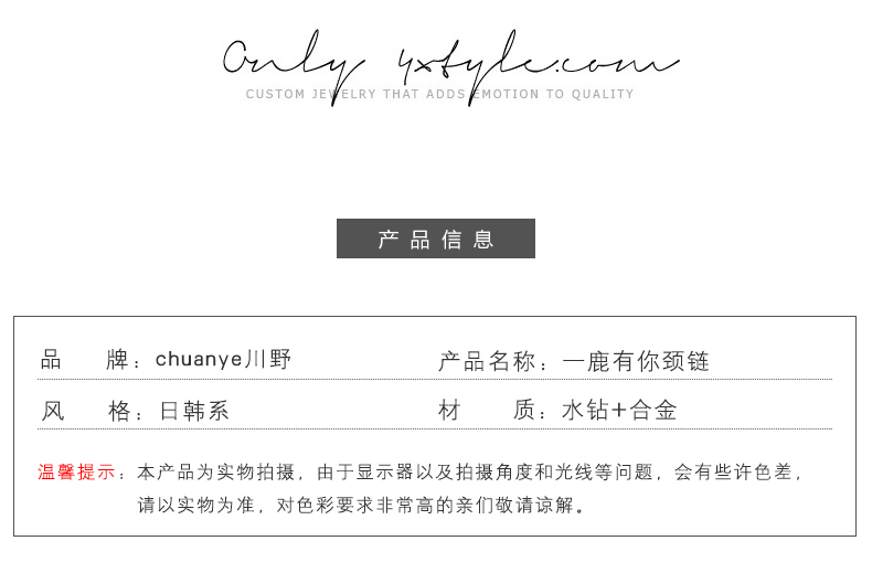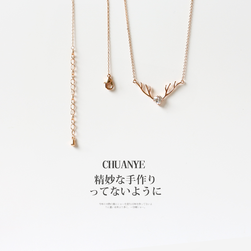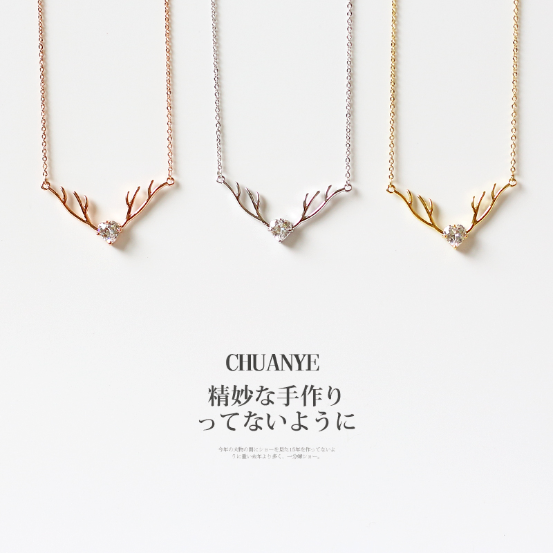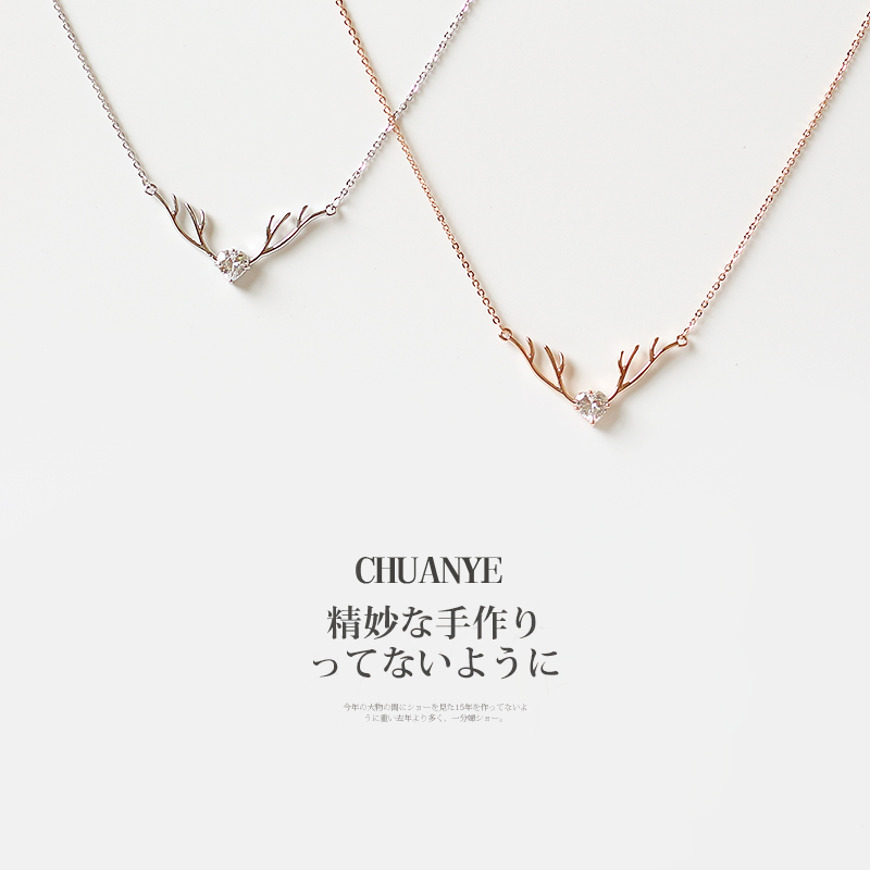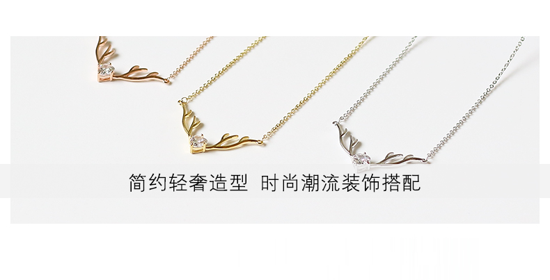 日系轻灵鹿角项链气质水钻合金吊坠锁骨链成人配饰女 JiMi 3#银色