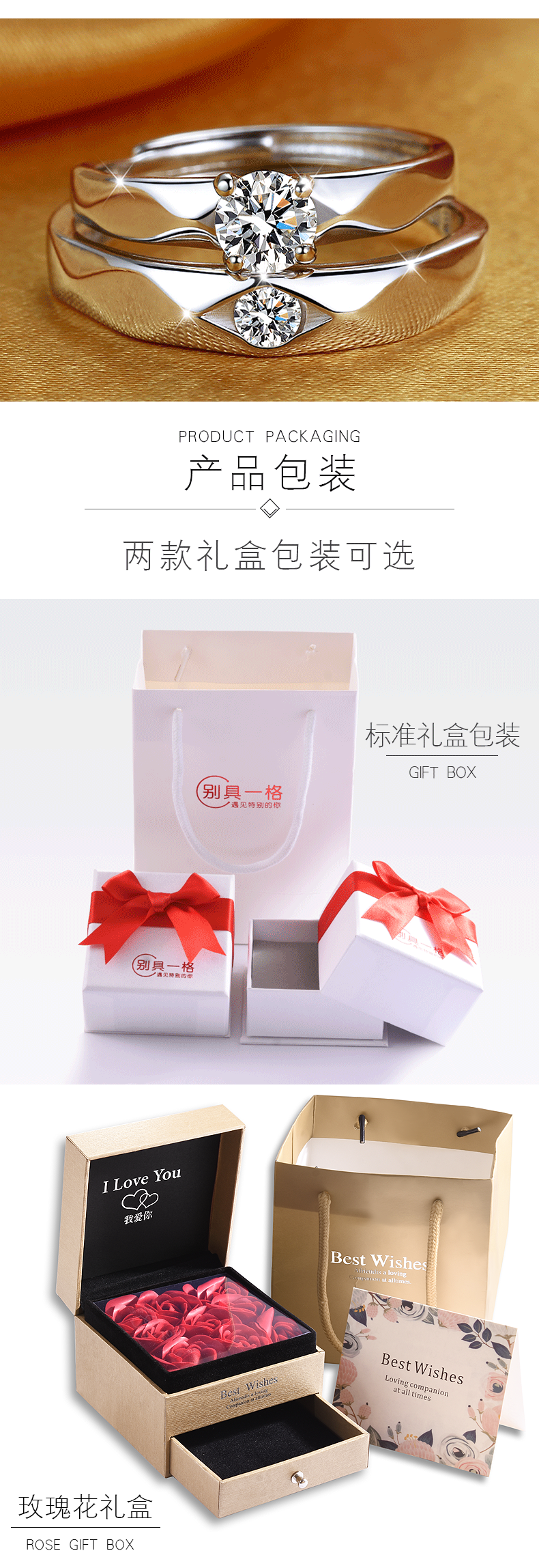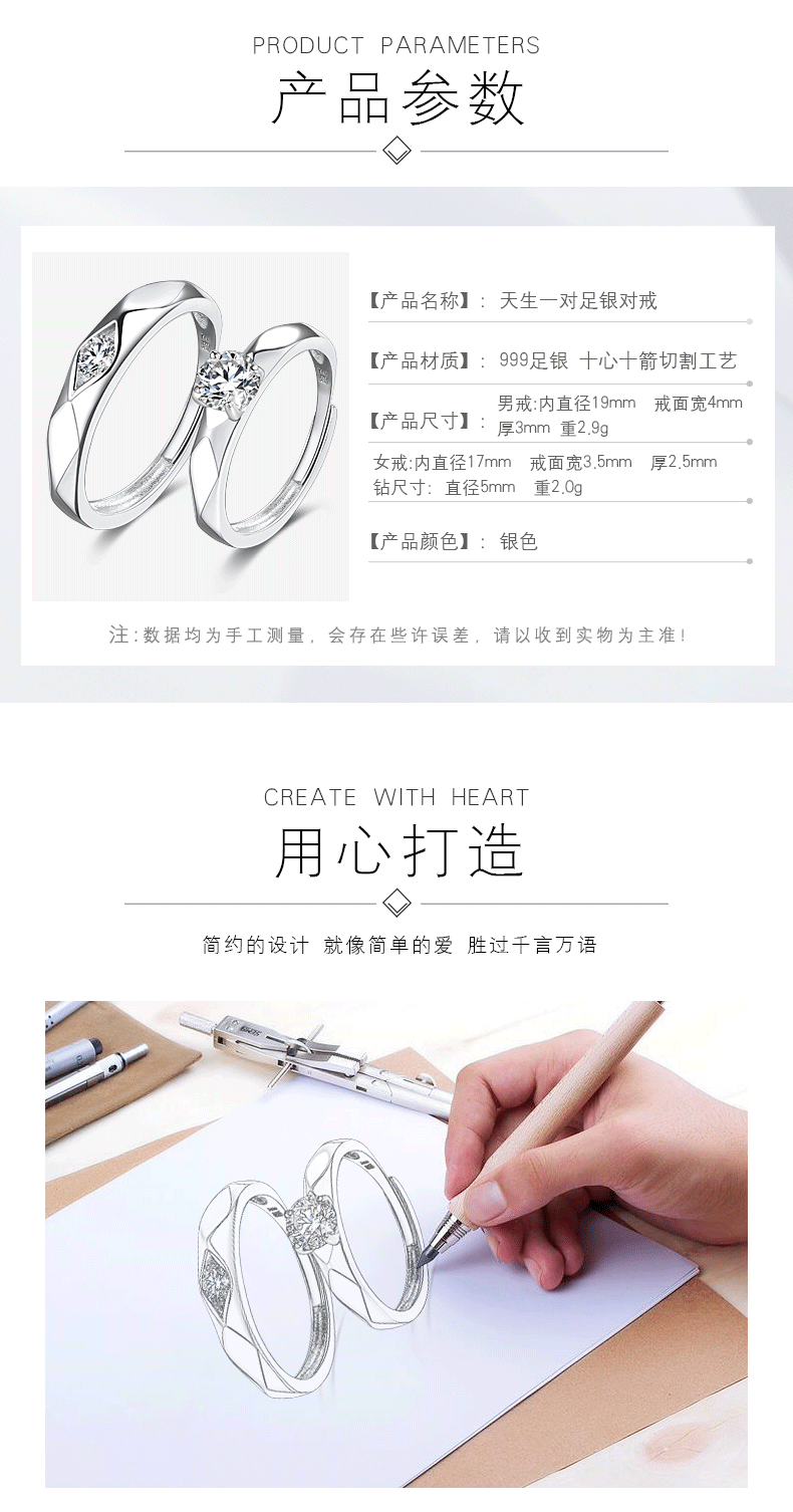 S999足银情侣戒指纯银一对刻字对戒男女仿真钻戒周年纪念520 JiMi
