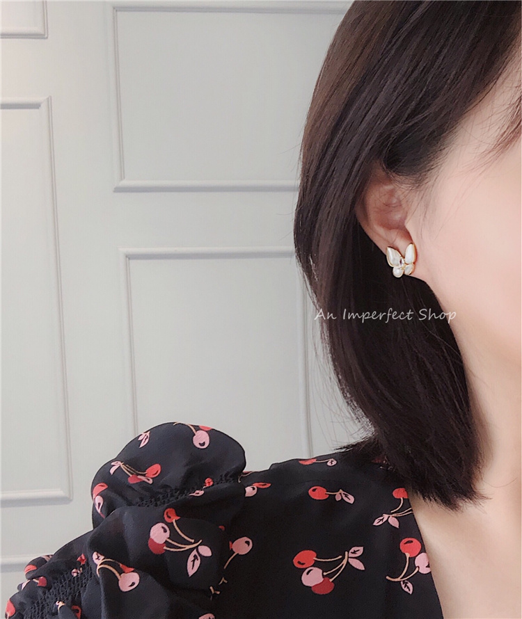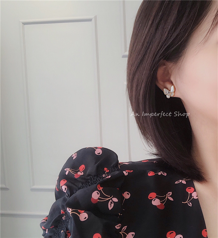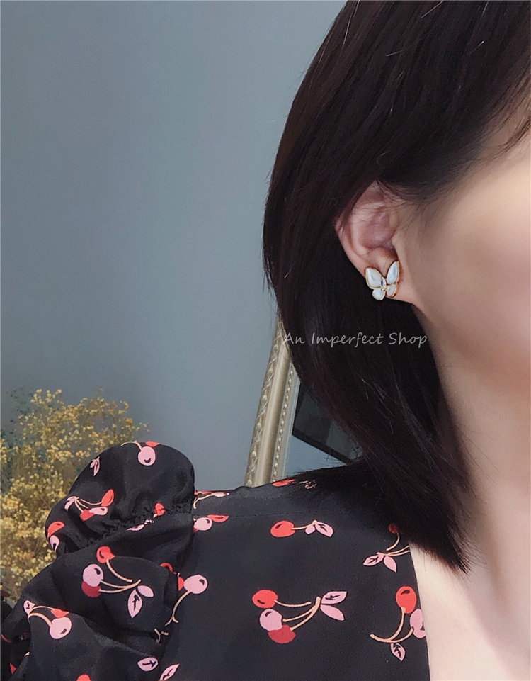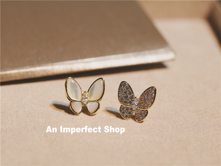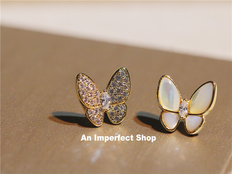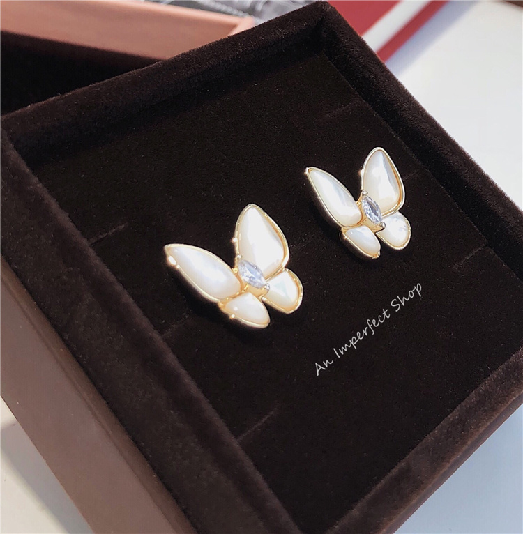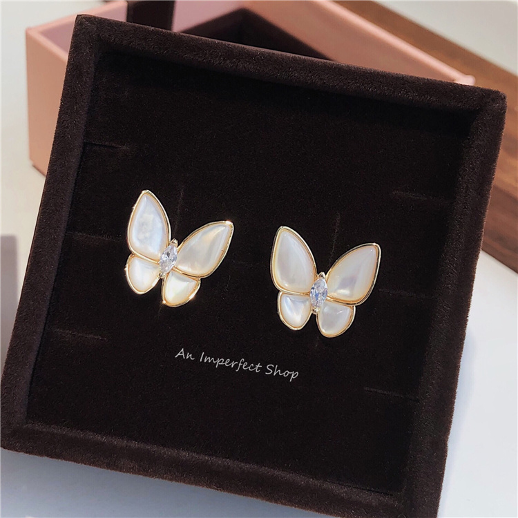 JiMi质感轻奢白贝母半钻蝴蝶耳钉女2023新款温柔气质甜美百搭银针耳饰