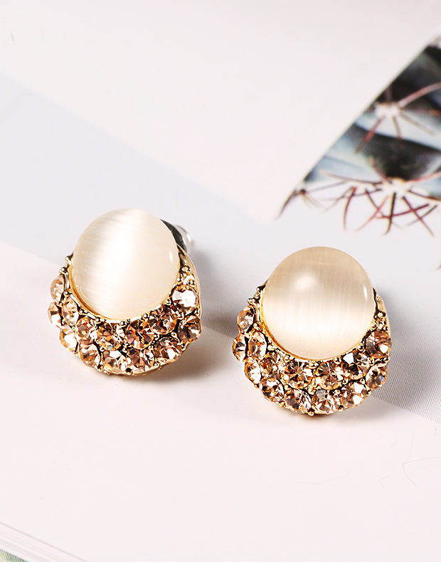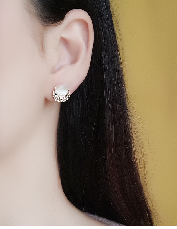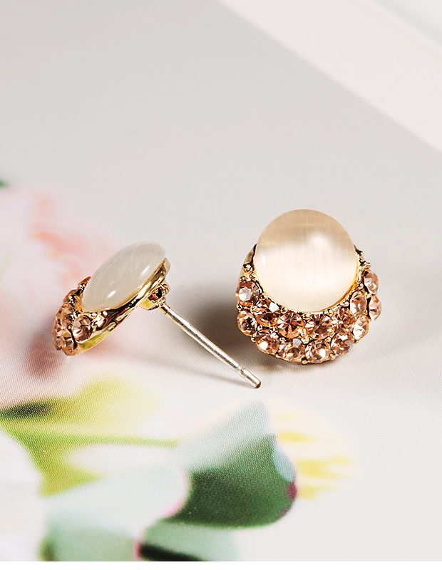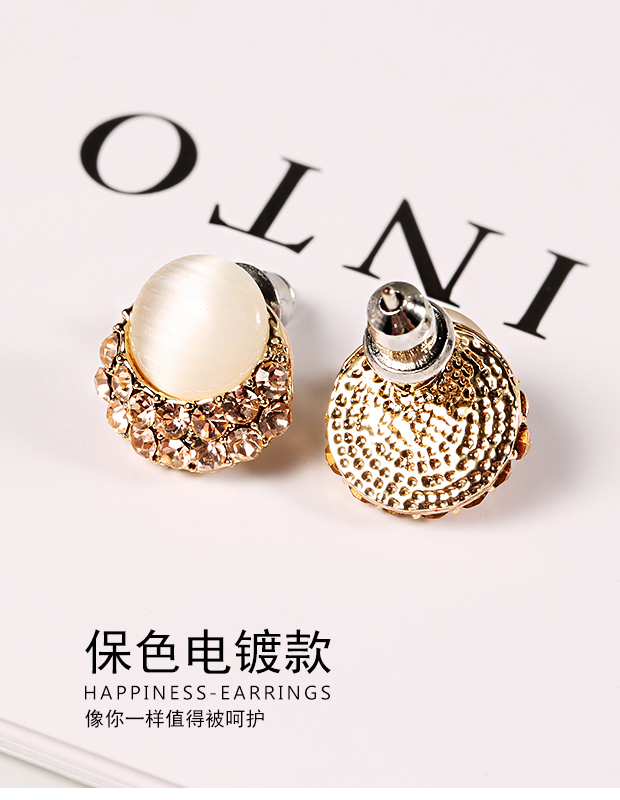 耳钉女纯银气质S925猫眼石镶钻耳环日韩国时尚耳扣耳饰品潮 JiMi 0940猫眼石银针