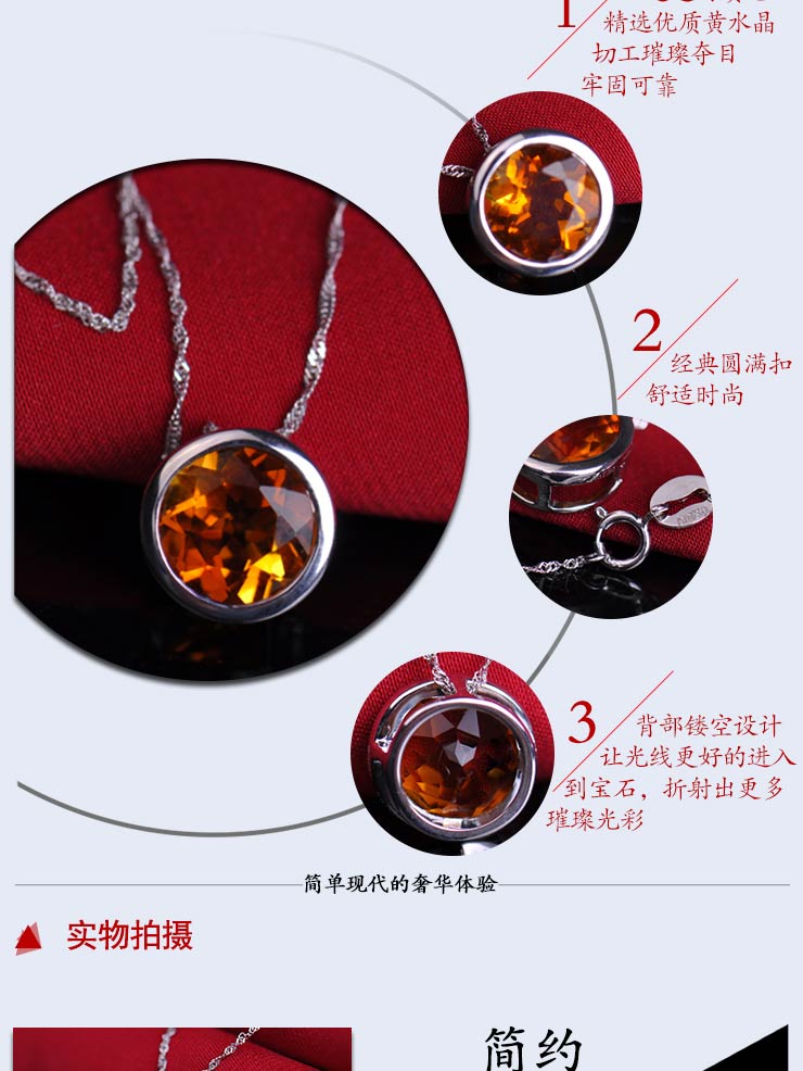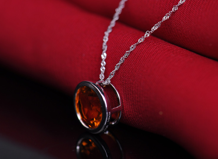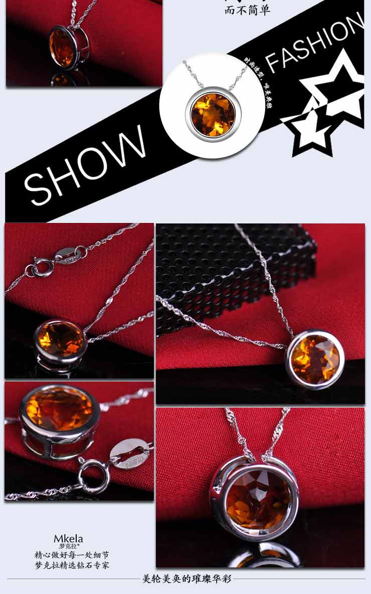 梦克拉Mkela 白18k金黄晶吊坠 暖阳 彩宝圆形刻面黄水晶 红色