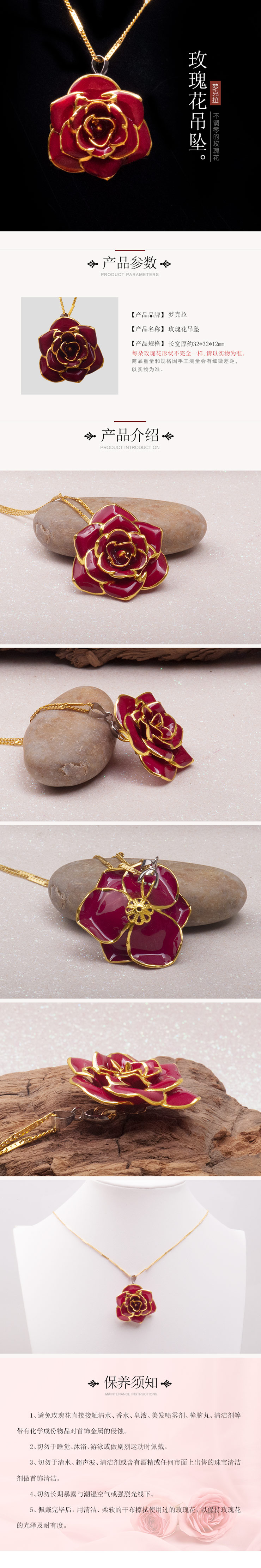 梦克拉 Mkela 鲜花玫瑰烤漆吊坠 玫瑰花吊坠红色玫瑰花项链花朵吊坠女饰品 花形 吊坠 民族风 红色