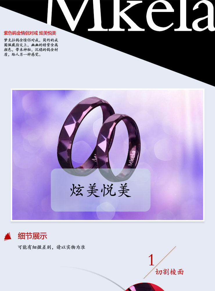 梦克拉 Mkela 钨金情侣紫色戒指 炫美悦美 情侣对戒