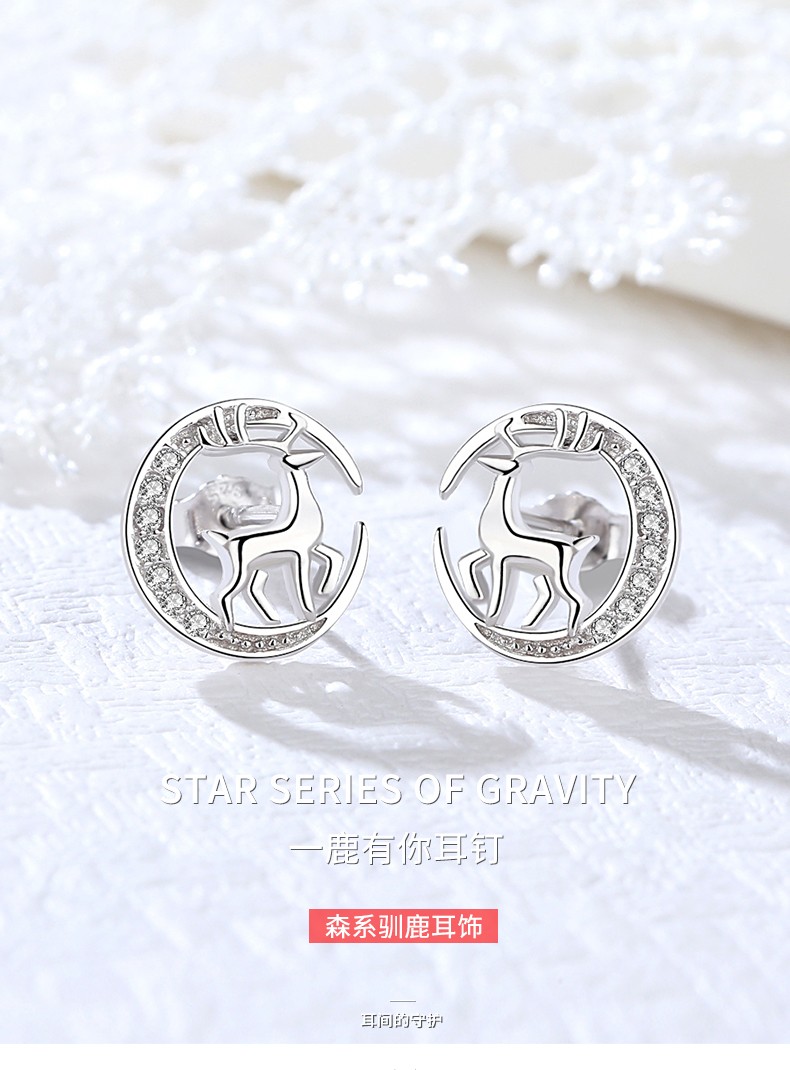 鑫铂尼耳钉女新款小鹿气质个性一路有你耳饰七夕情人节送闺蜜老婆媳妇