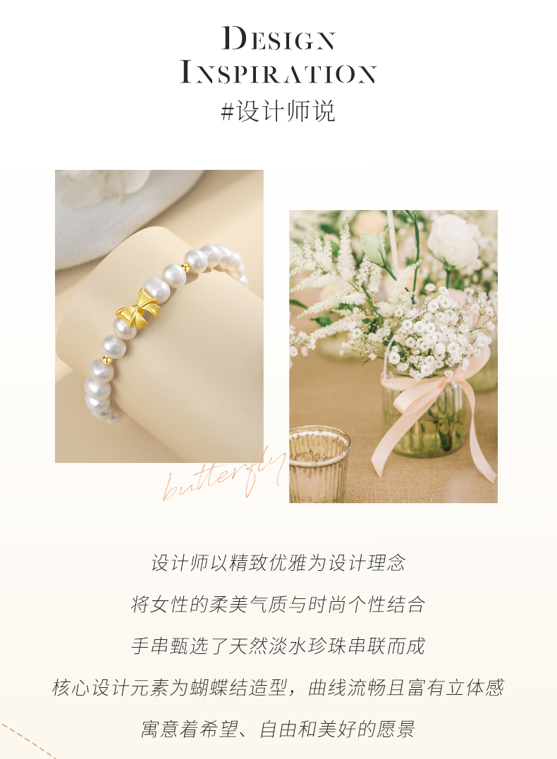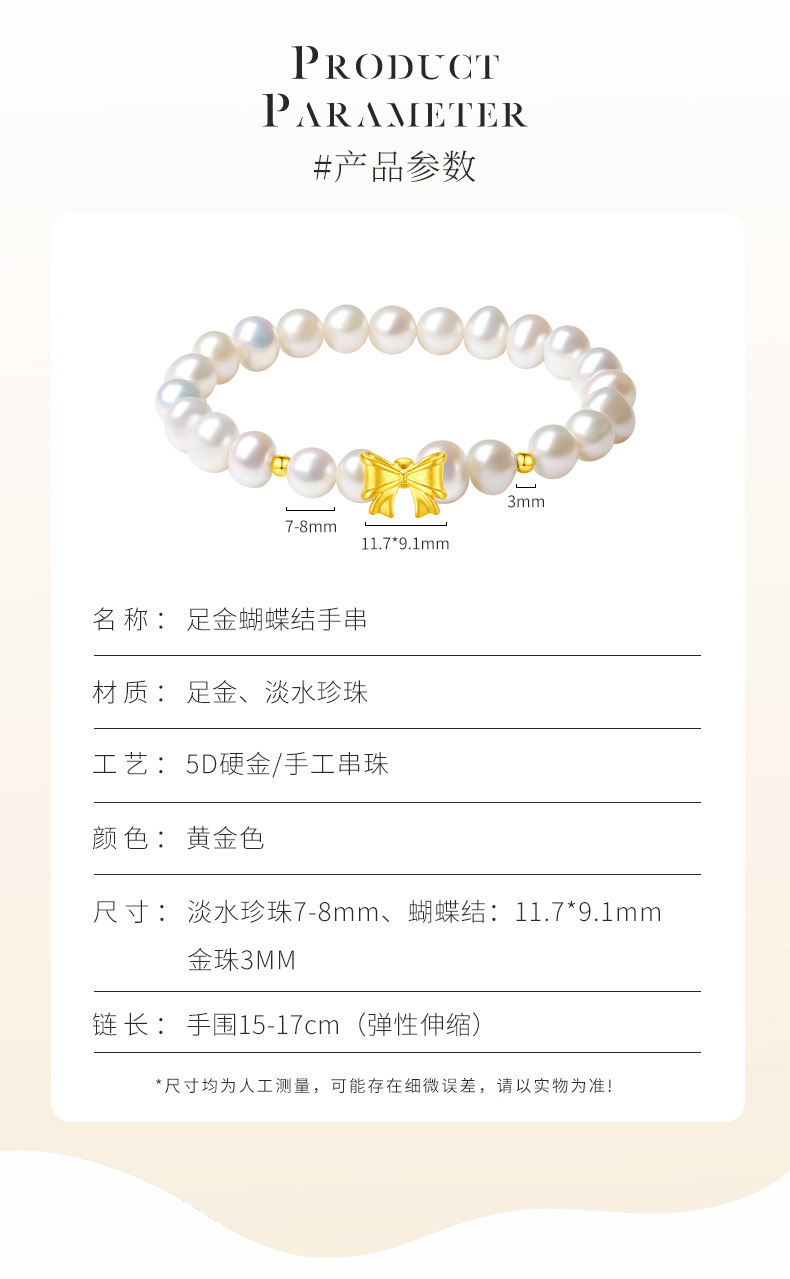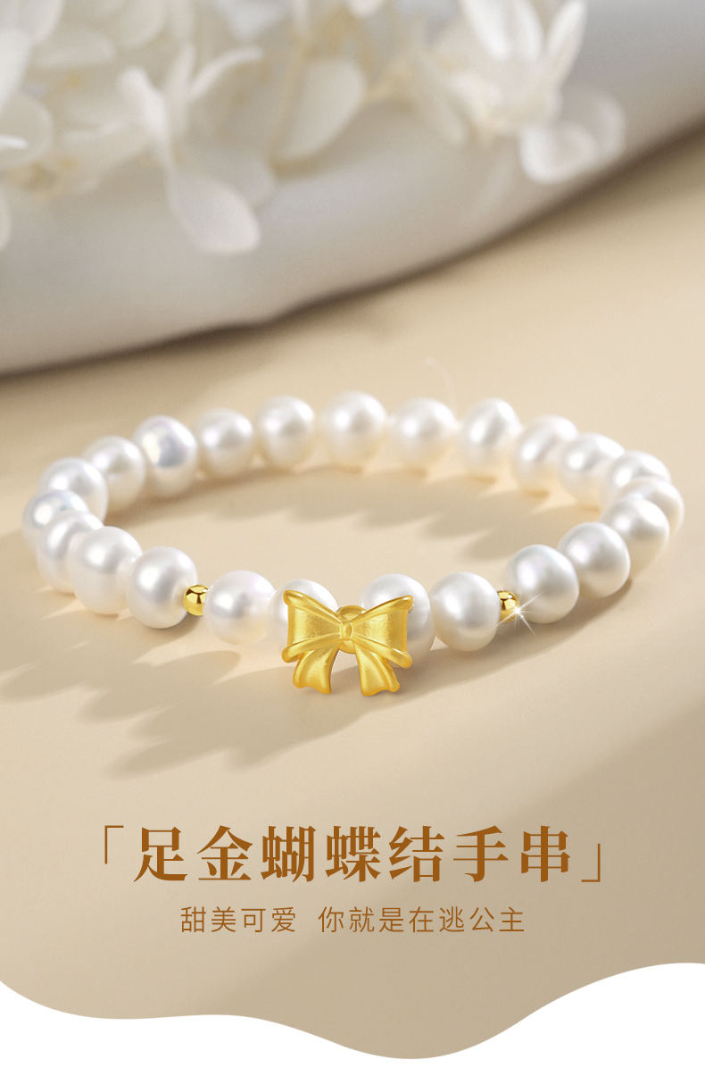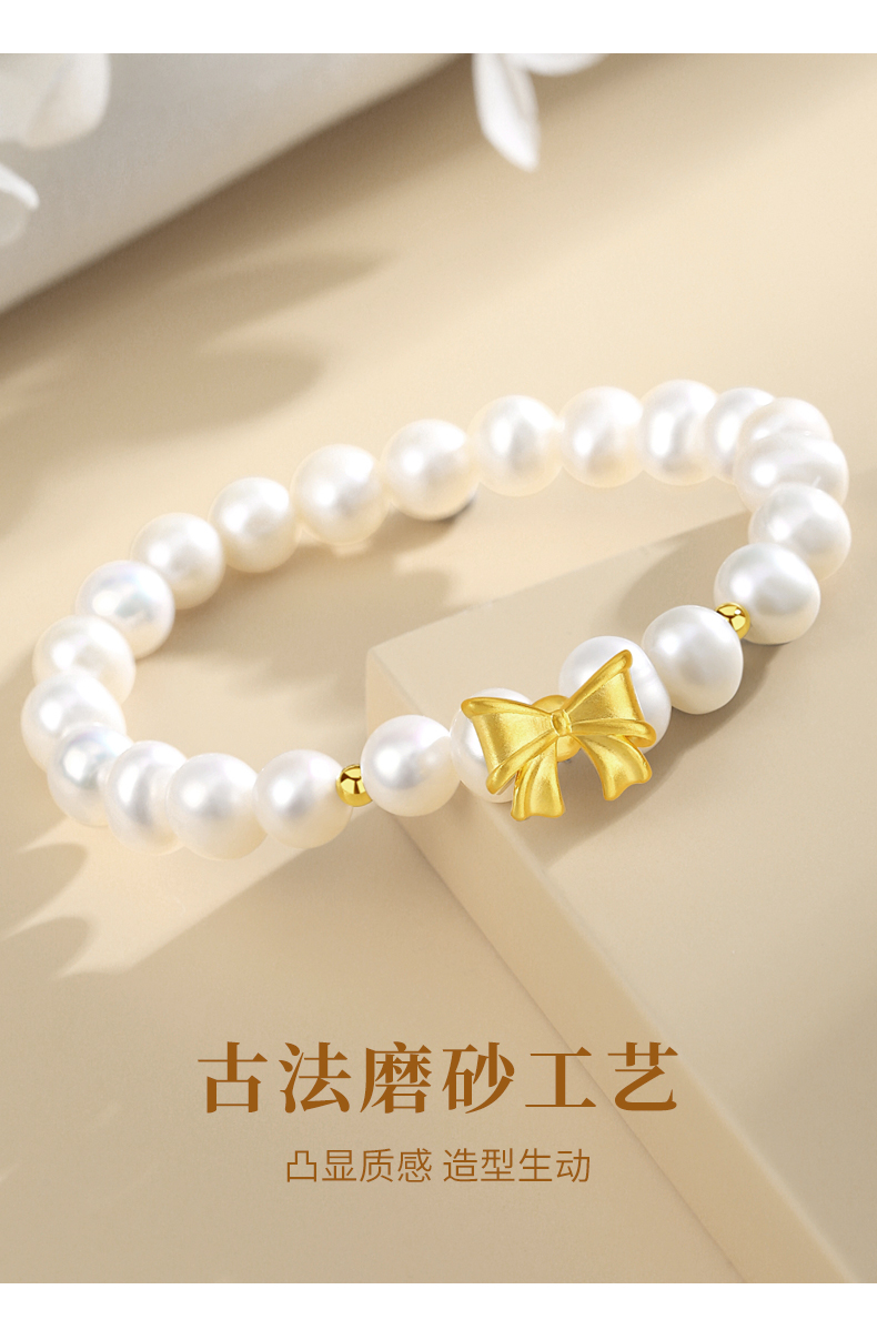 鑫铂尼足金999在逃公主蝴蝶结手链女天然淡水珍珠手串硬金转运珠饰品情人节圣诞新年送朋友妈妈老婆 足金蝴蝶结珍珠手串