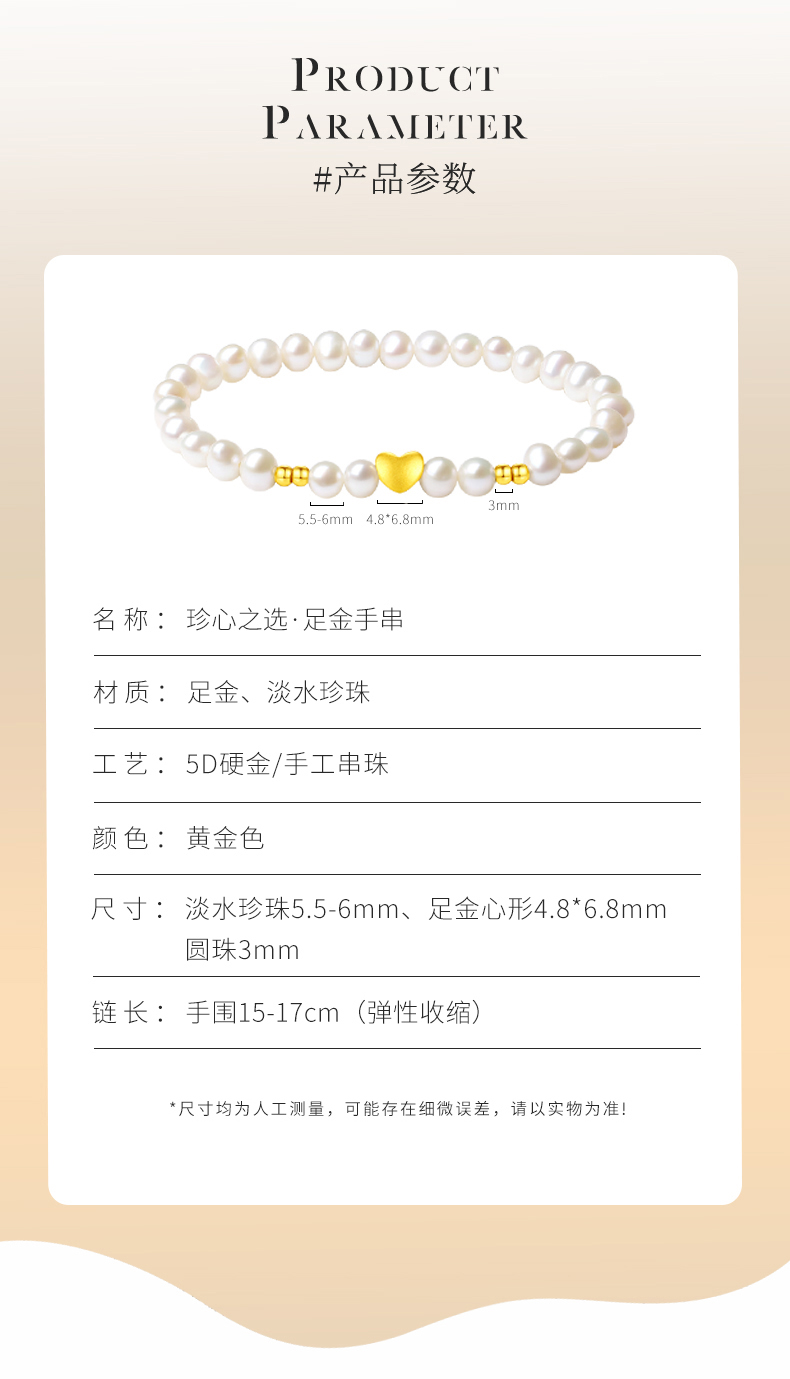 黄金首饰999足金手链女爱心转运珠天然淡水珍珠手串饰品轻奢高级感生日礼物圣诞新年送朋友 珍心之选足金手串