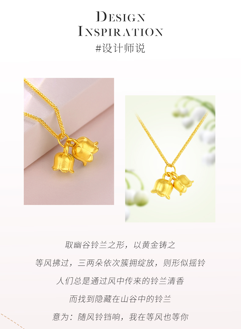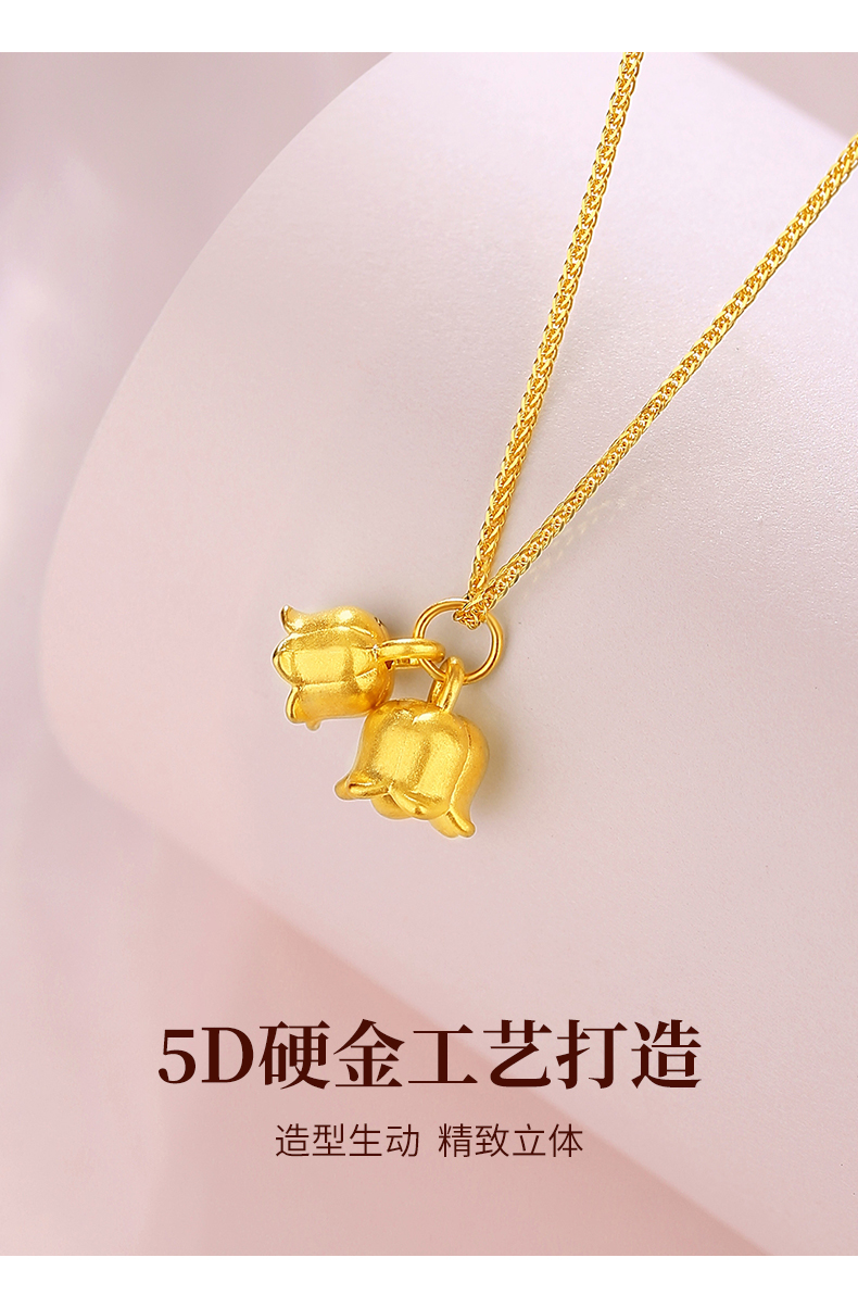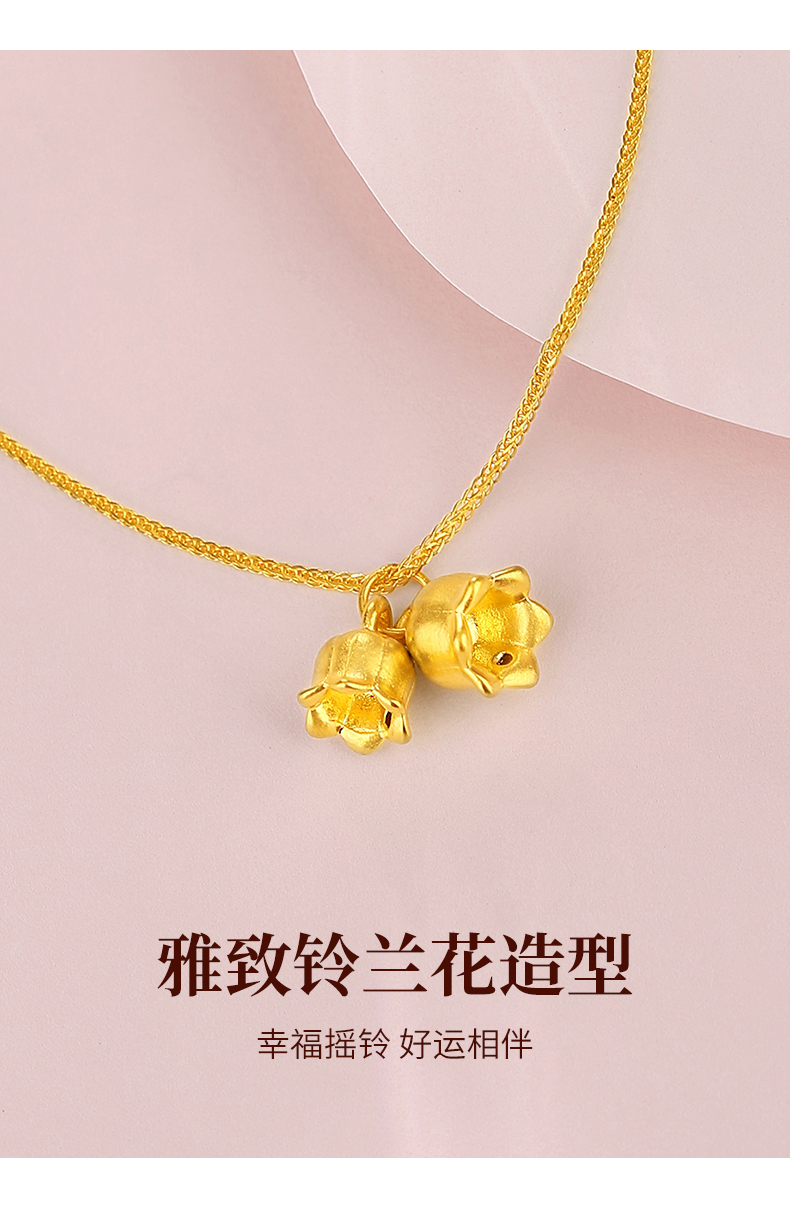 轻奢品牌 足金幸福铃兰吊坠项链珠宝首饰结婚订婚周年纪念日生日礼品送老婆媳妇女神女士妈妈父亲 足金幸福铃兰吊坠+送肖邦银链