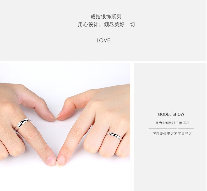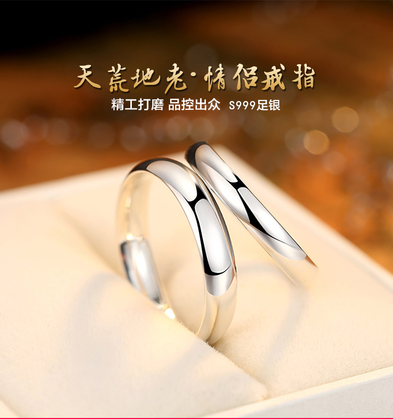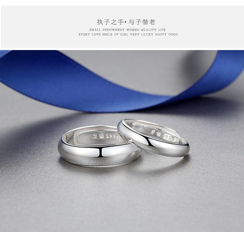 鑫铂尼999纯银情侣戒指男女对戒一对开口简约闺蜜女生银饰戒子时尚饰品首饰结婚订婚520情人节生日礼物送男友女友 钟久久