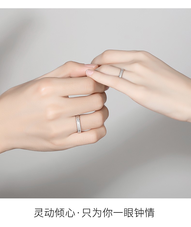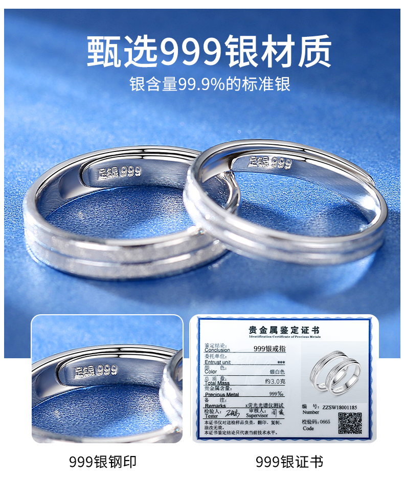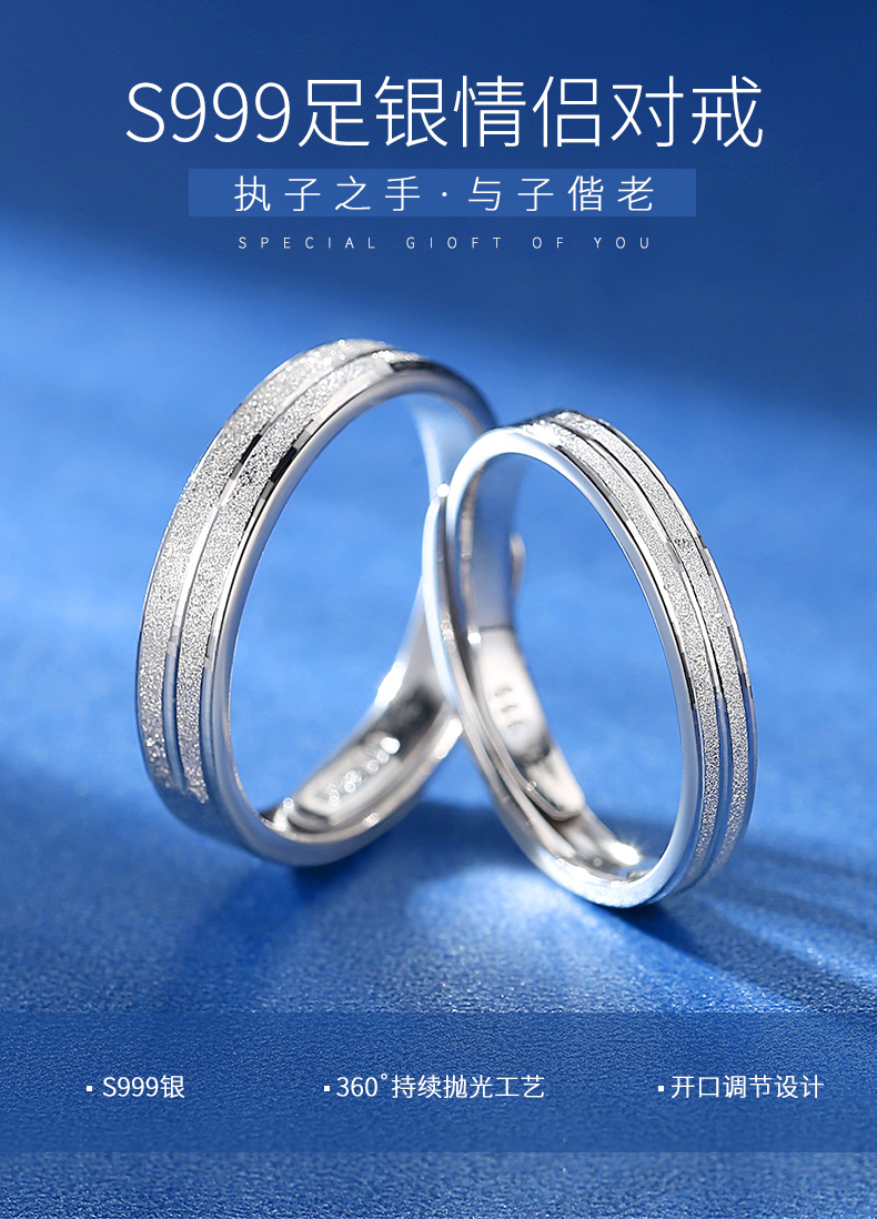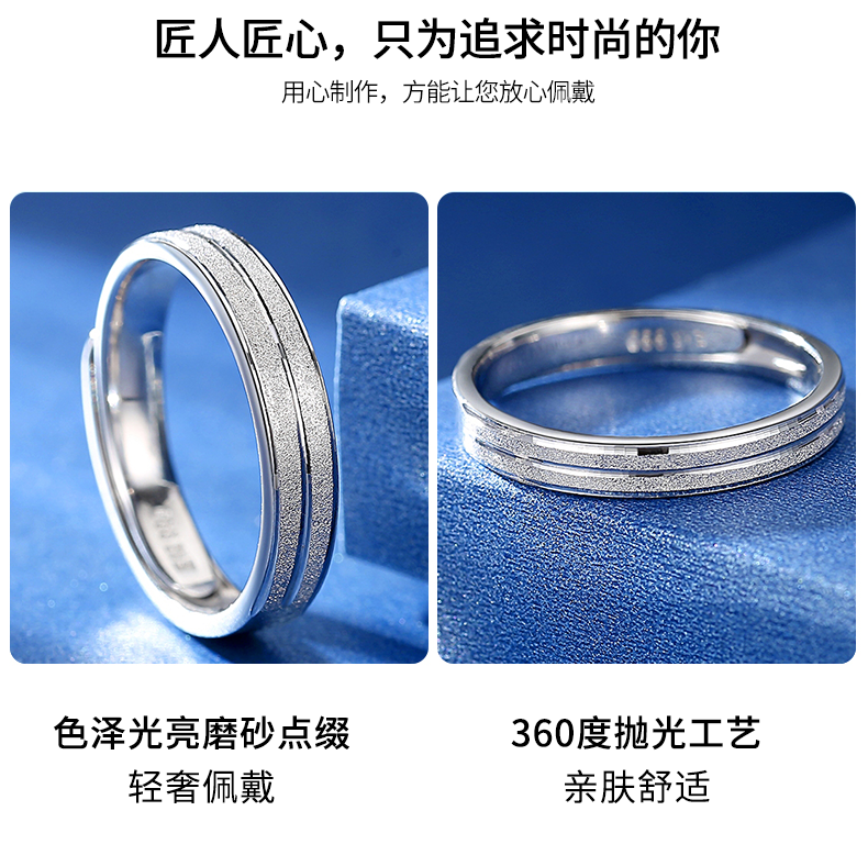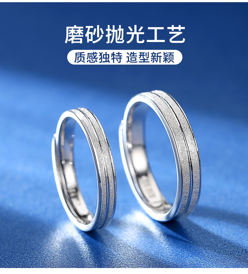 鑫铂尼 999足银磨砂情侣戒指纯银一对对戒银饰女生闺蜜饰品 纪念日520情人节礼物送男友女友 钟久久