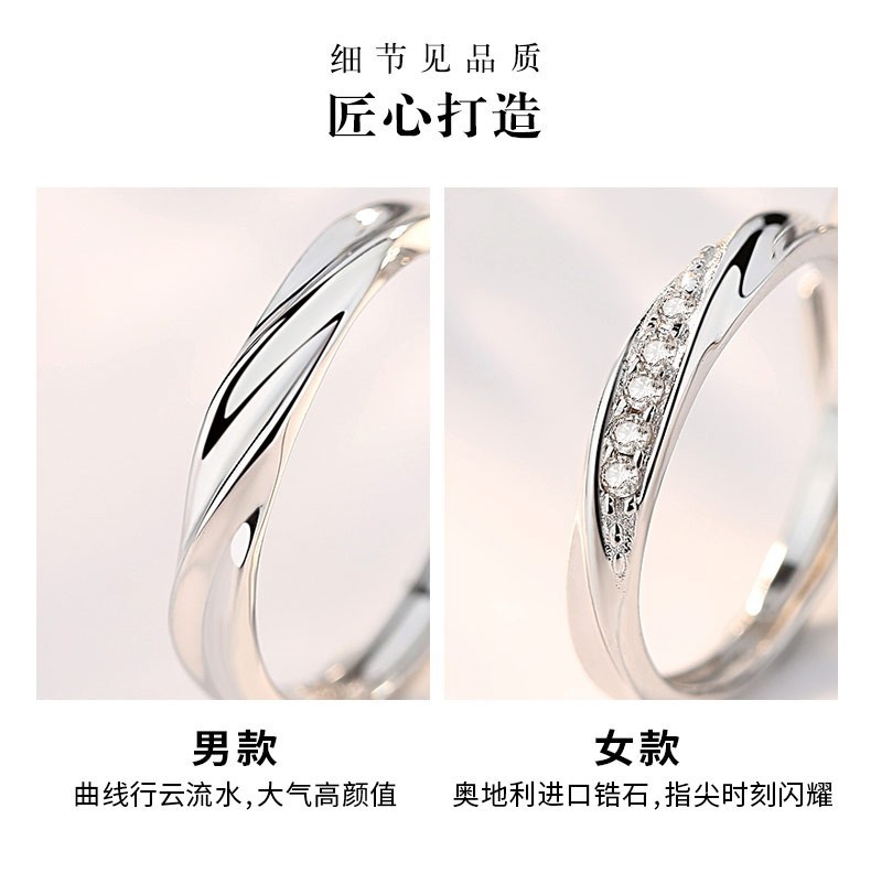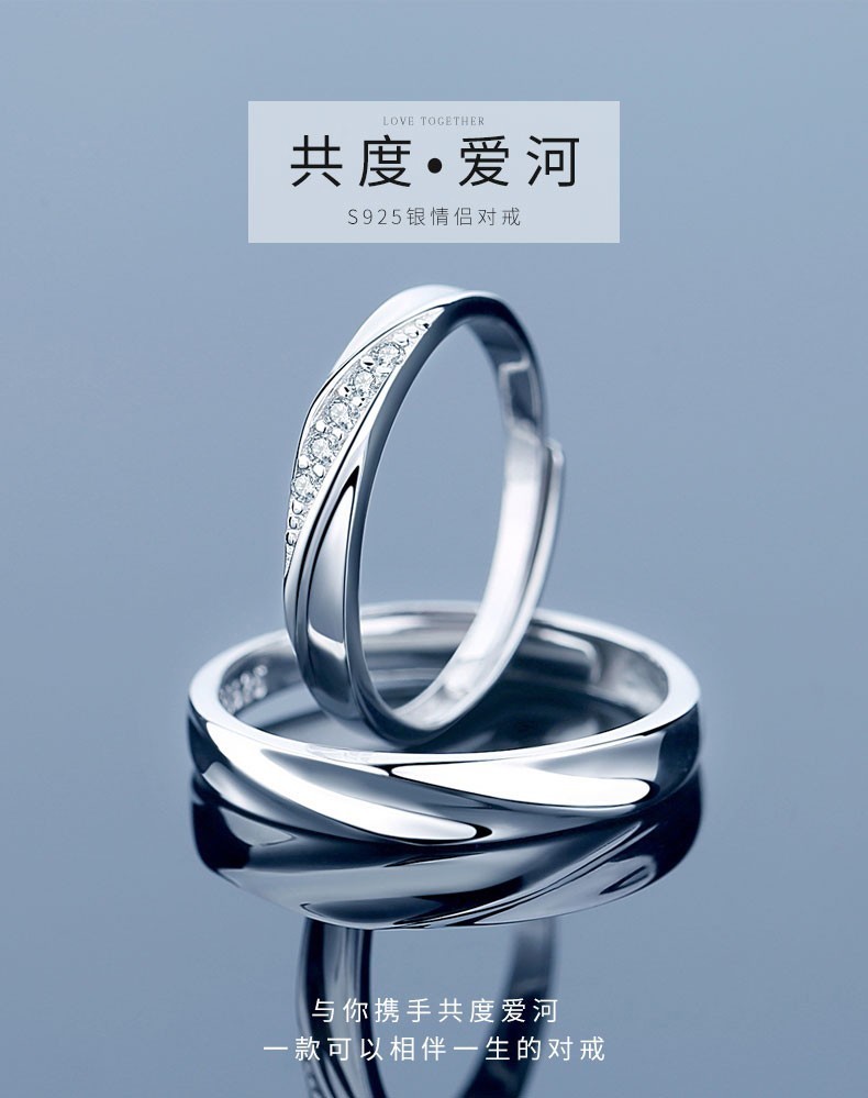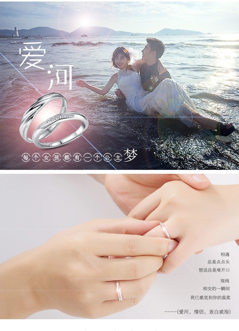 鑫铂尼七夕情人节情侣款共渡爱河戒指简约百搭告白对戒送女朋友老婆礼物