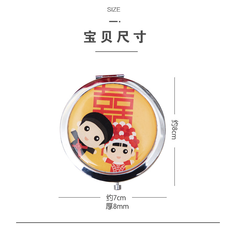 敬平新娘陪嫁嫁妆化妆镜随身双面小圆镜迷你便携结婚补妆镜子结婚用品便携式用镜 小圆镜(款2)一个