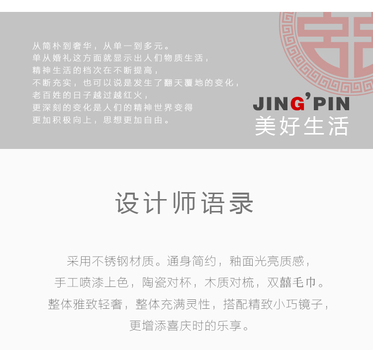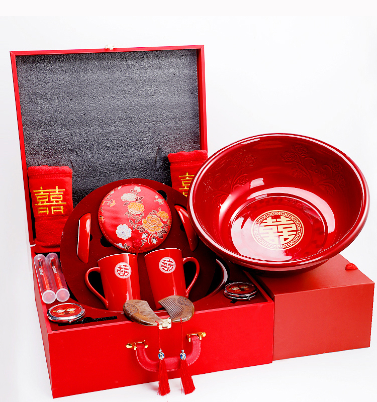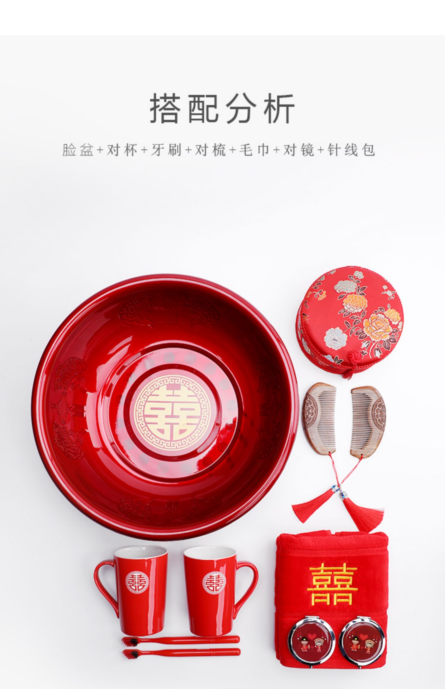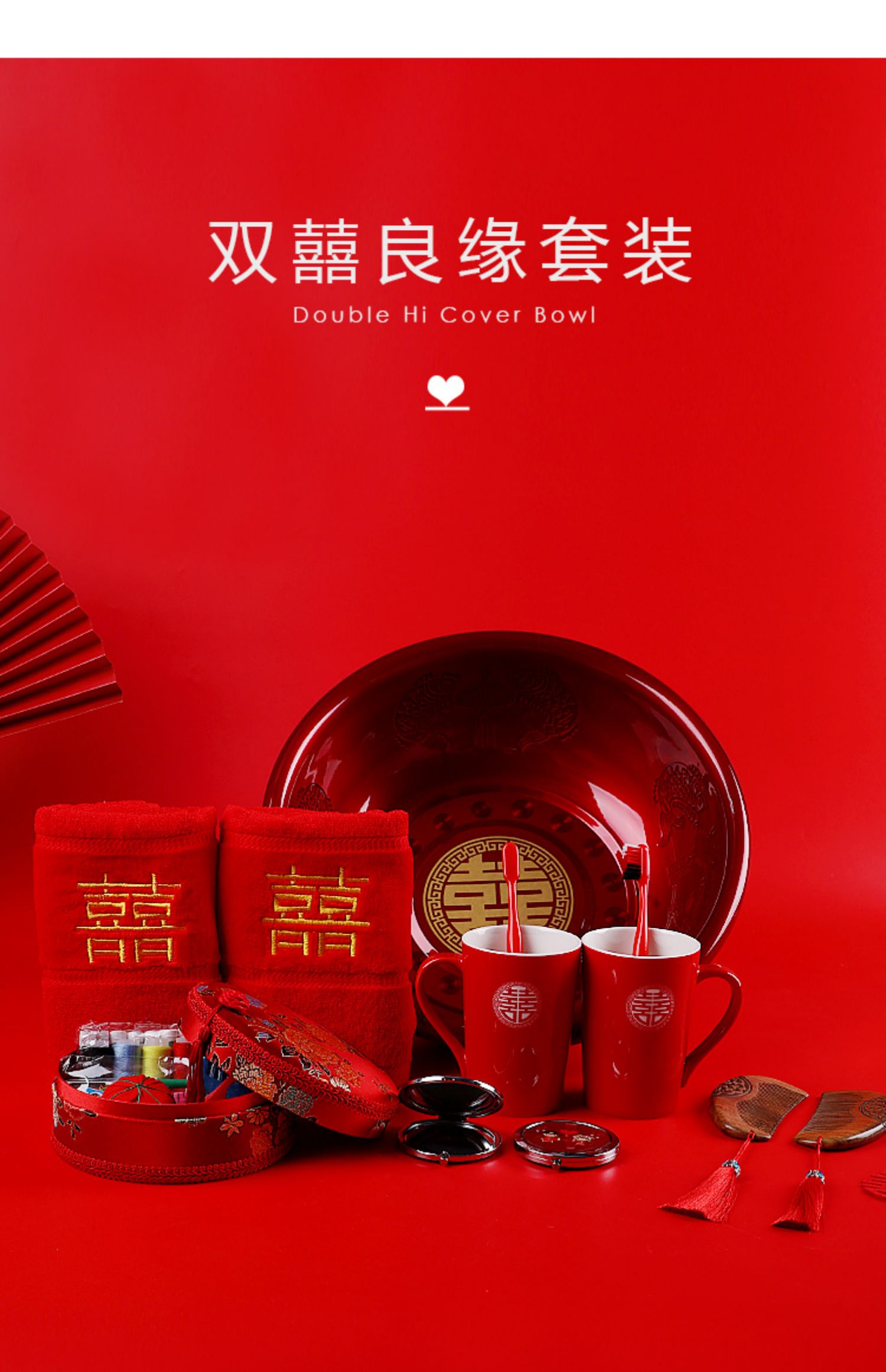 JING PING喜盆盆家用陪嫁结婚脸盆婚庆用品红套装盆子一对新娘嫁妆